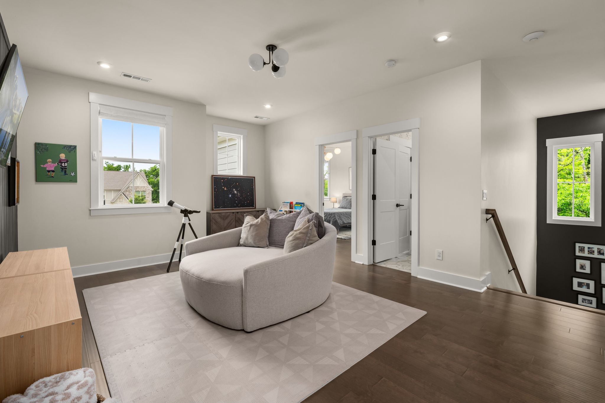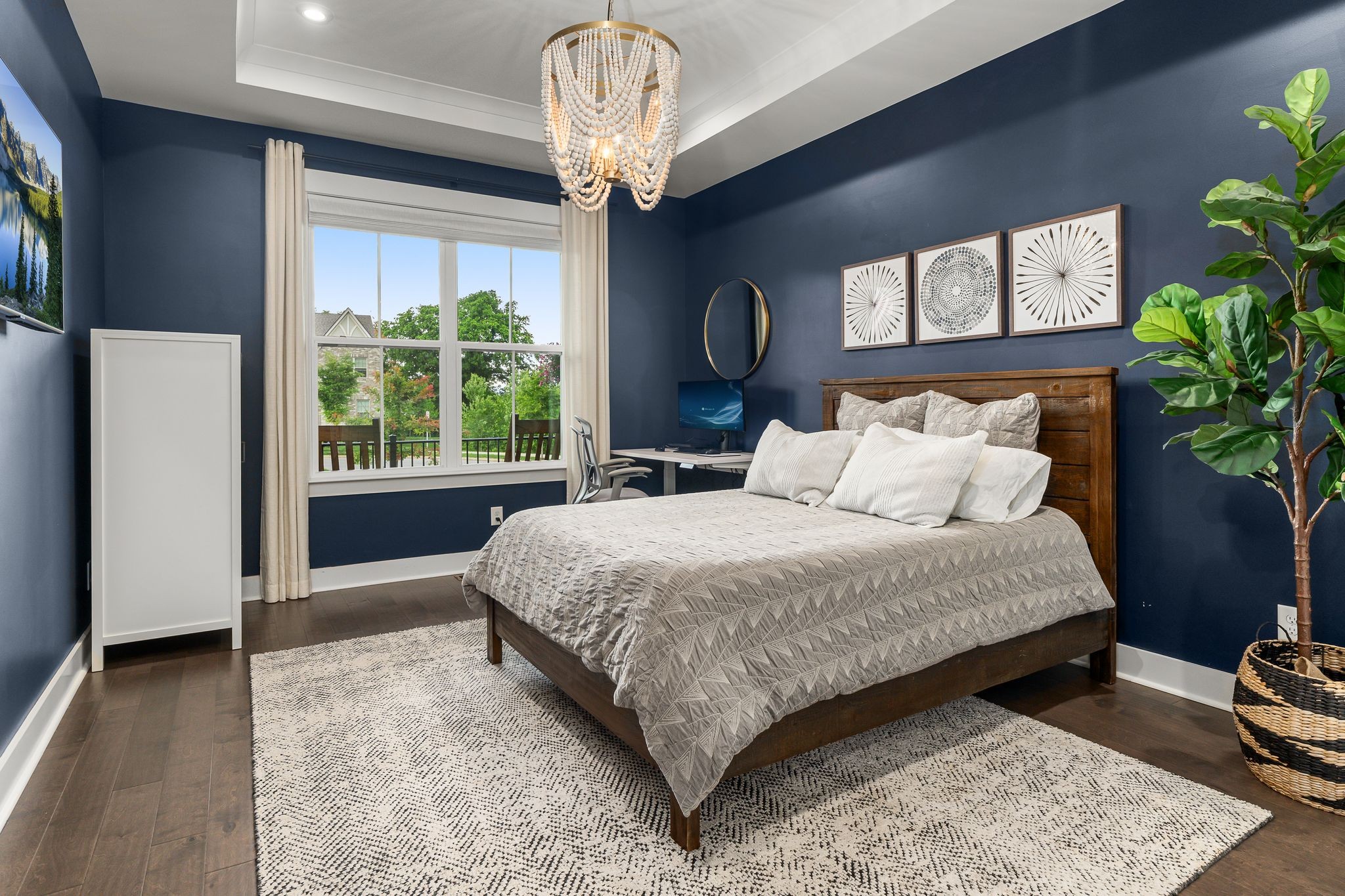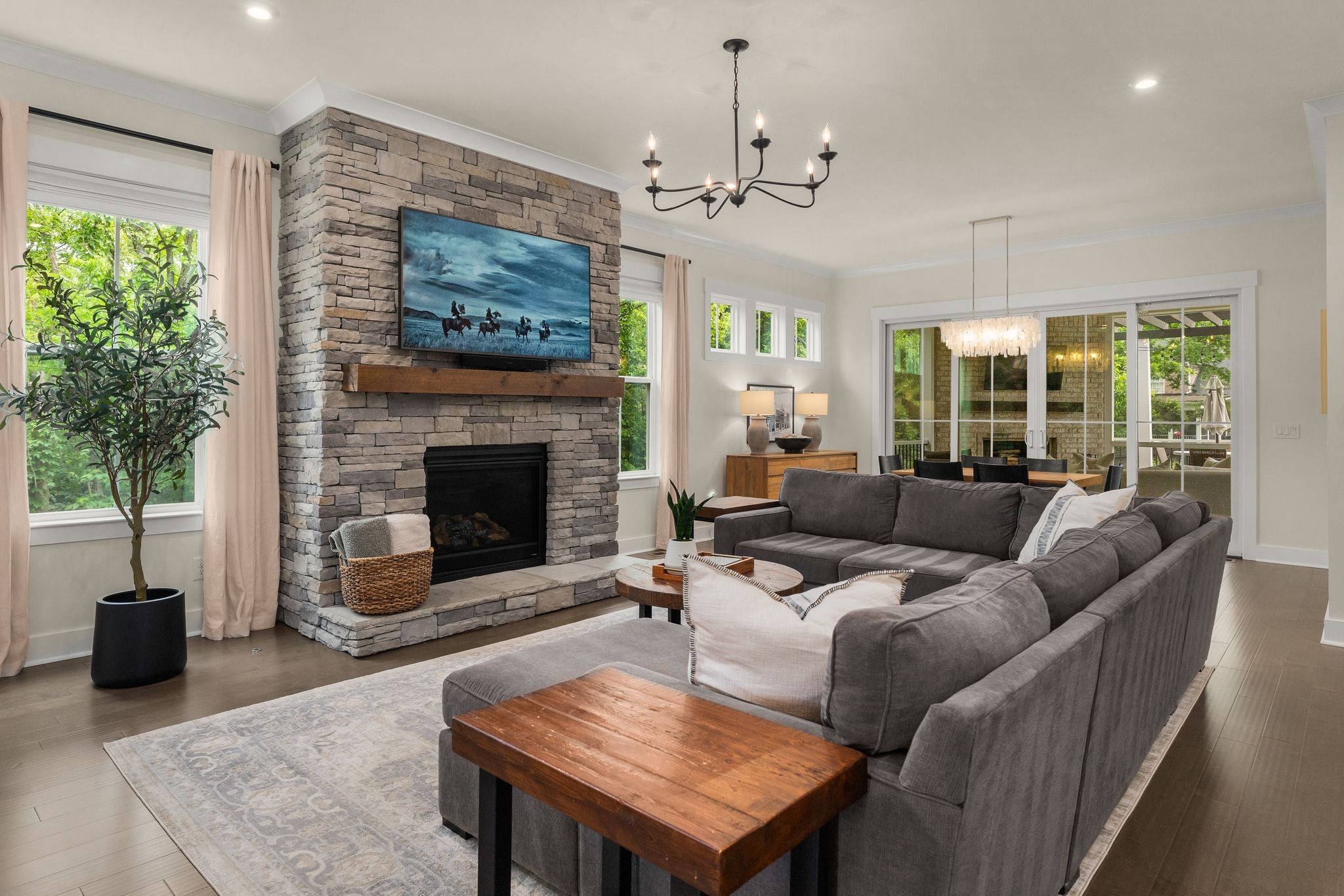 Step into 454 Cardel Ln, a stunningly designed 6 BD, 5 BA home in the heart of Franklin’s coveted Cardel Village. Built in 2020, this meticulously maintained residence offers 3720 sqft of sophisticated comfort and thoughtful functionality tucked back at the end of an idyllic cul-de-sac. From dual owner’s suites to the soaring 10-foot ceilings and custom craftsman trim, every inch has been curated with intention. The gourmet kitchen features upgraded cabinetry, double ovens, gas cooktop, dry bar with wine fridge and designer finishes ideal for hosting. A stunning primary bedroom flanked by fireplace-adorned sitting area and a spa-like ensuite, main floor private study, and open-concept family room round out the well-appointed interior. Upstairs, every bedroom boasts custom closets designed for both elegance and efficiency. Outside, unwind on the inviting covered front porch or sip morning coffee on the screened-in back patio surrounded by lush landscaping and a fully fenced-in backyard. Smart home integration, 2-car garage and proximity to charming downtown Franklin, top-rated schools, and local amenities complete this exceptional offering. This is not just a home - it’s a lifestyle waiting for you.