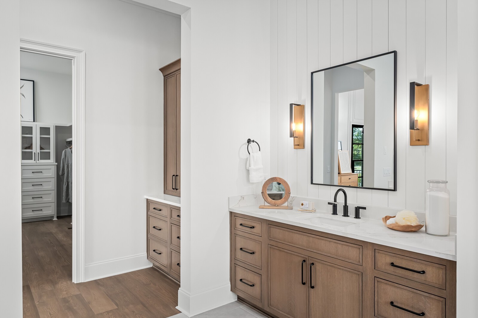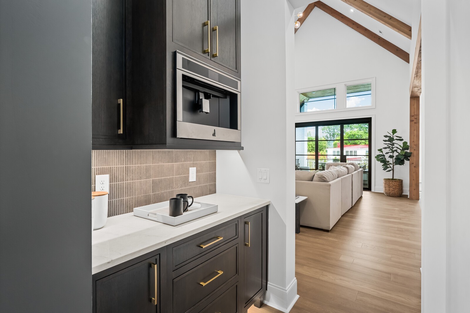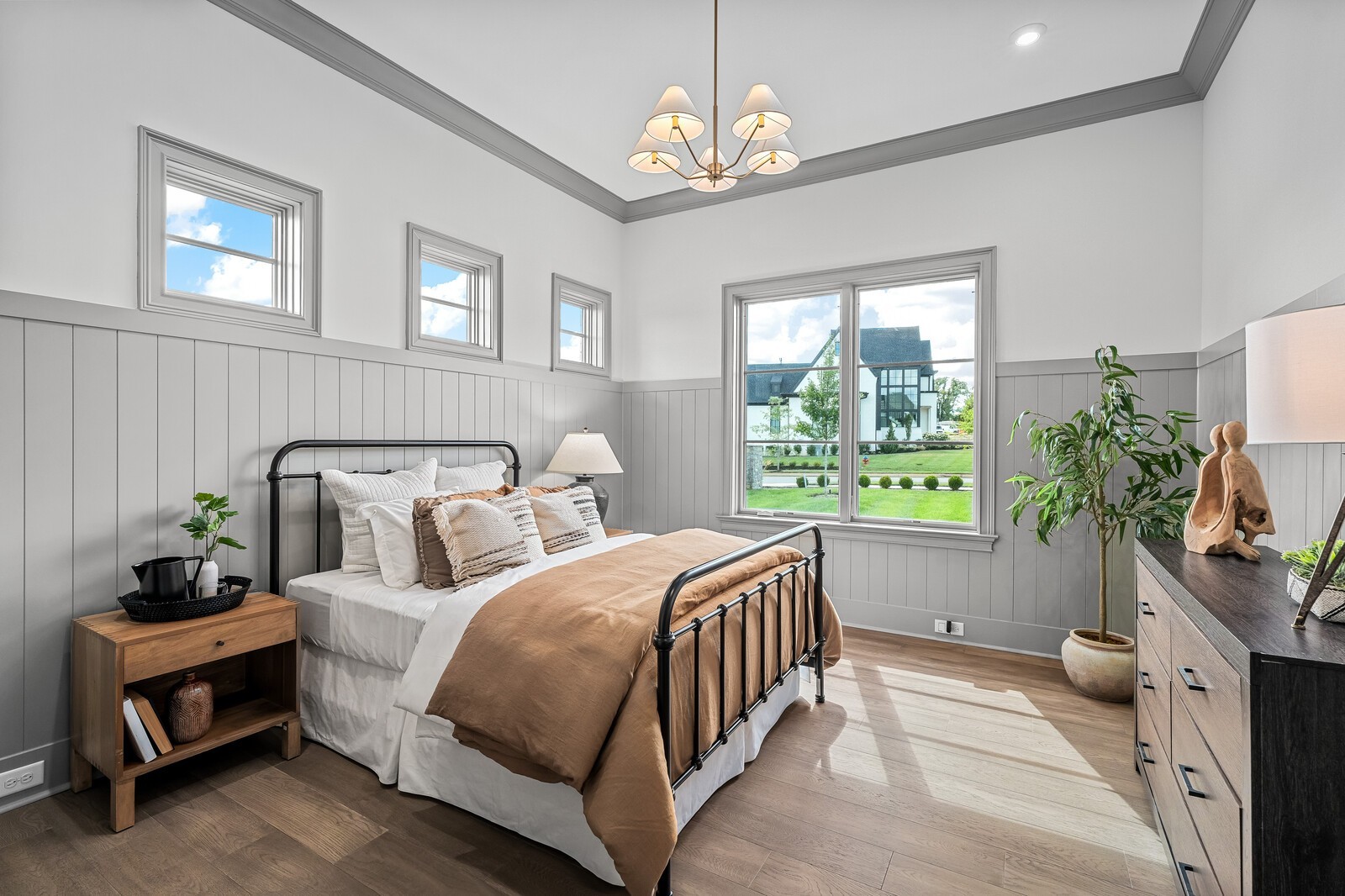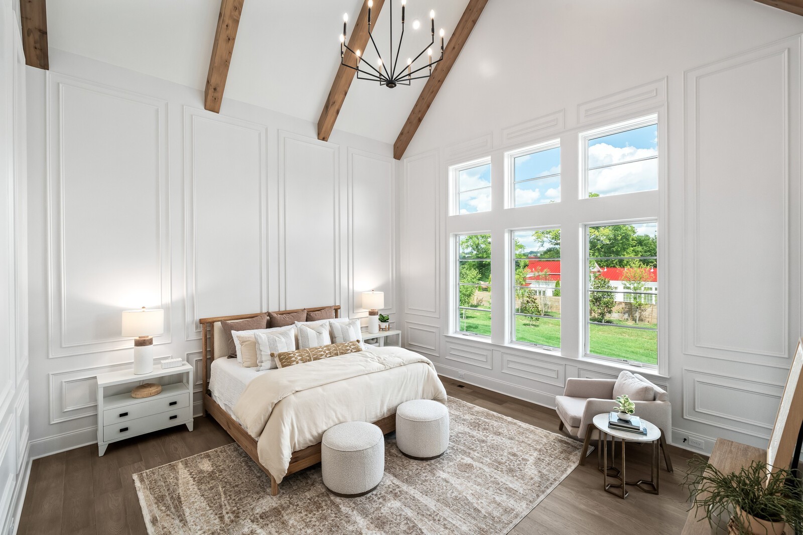 The soaring ceilings in both the primary suite and the living room create an airy, open ambiance, while oversized windows flood the space with natural light. The primary suite is a true retreat featuring dual walk-in closets and a spa-inspired bathroom, ready for your personal touch.