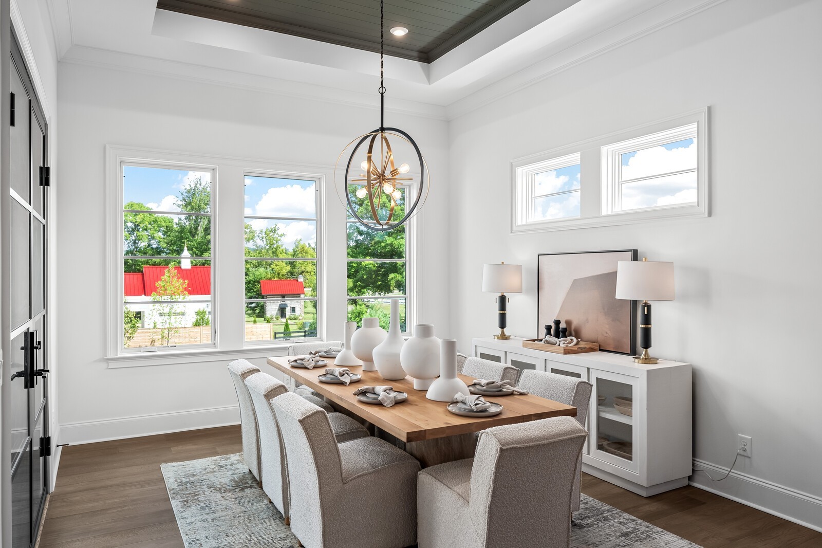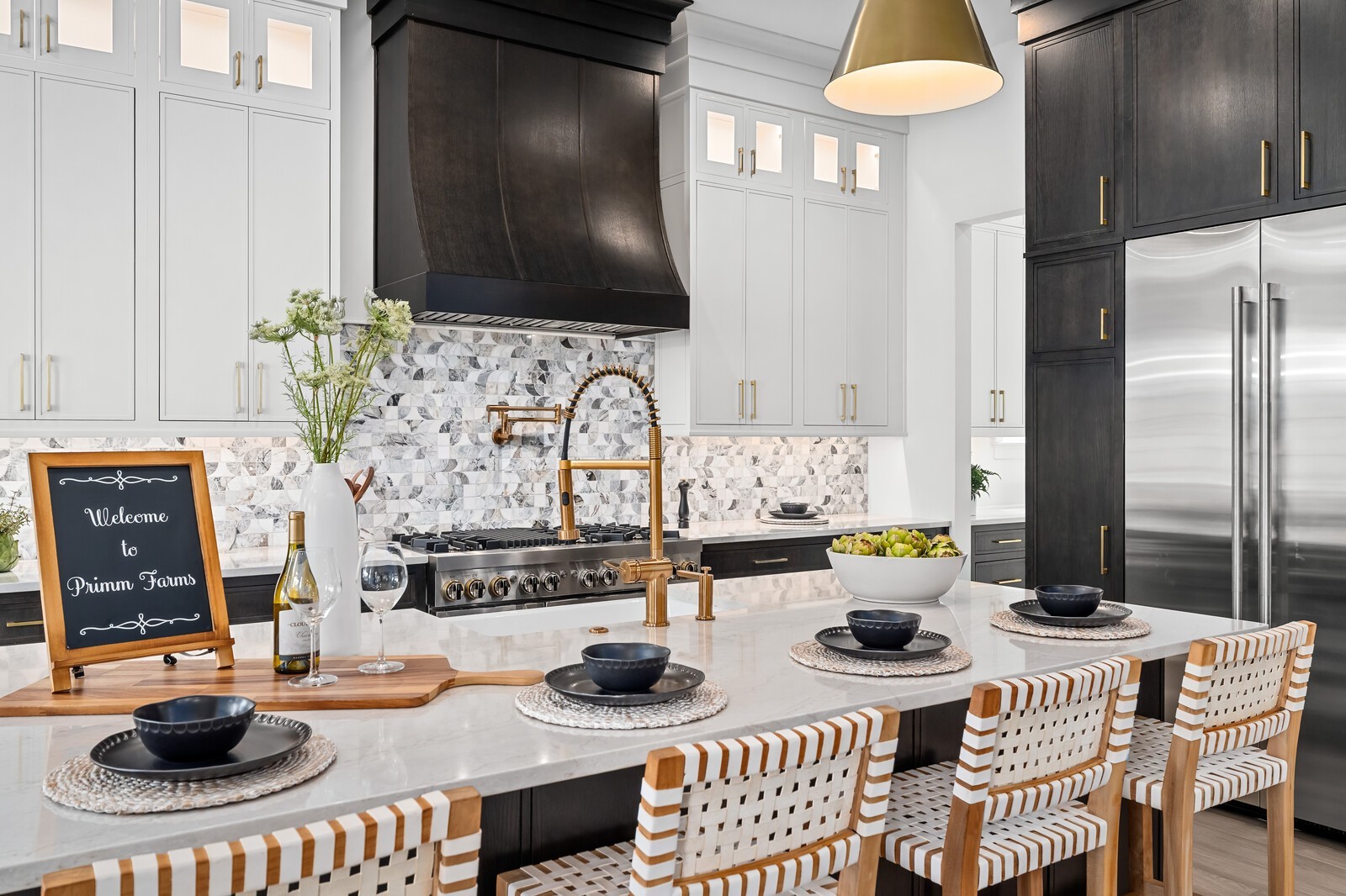 A ginormous laundry room with island offers ample space for organization, storage, and even a built-in craft or mudroom area. The 3-car garage ensures plenty of space for vehicles, tools, or recreational gear.