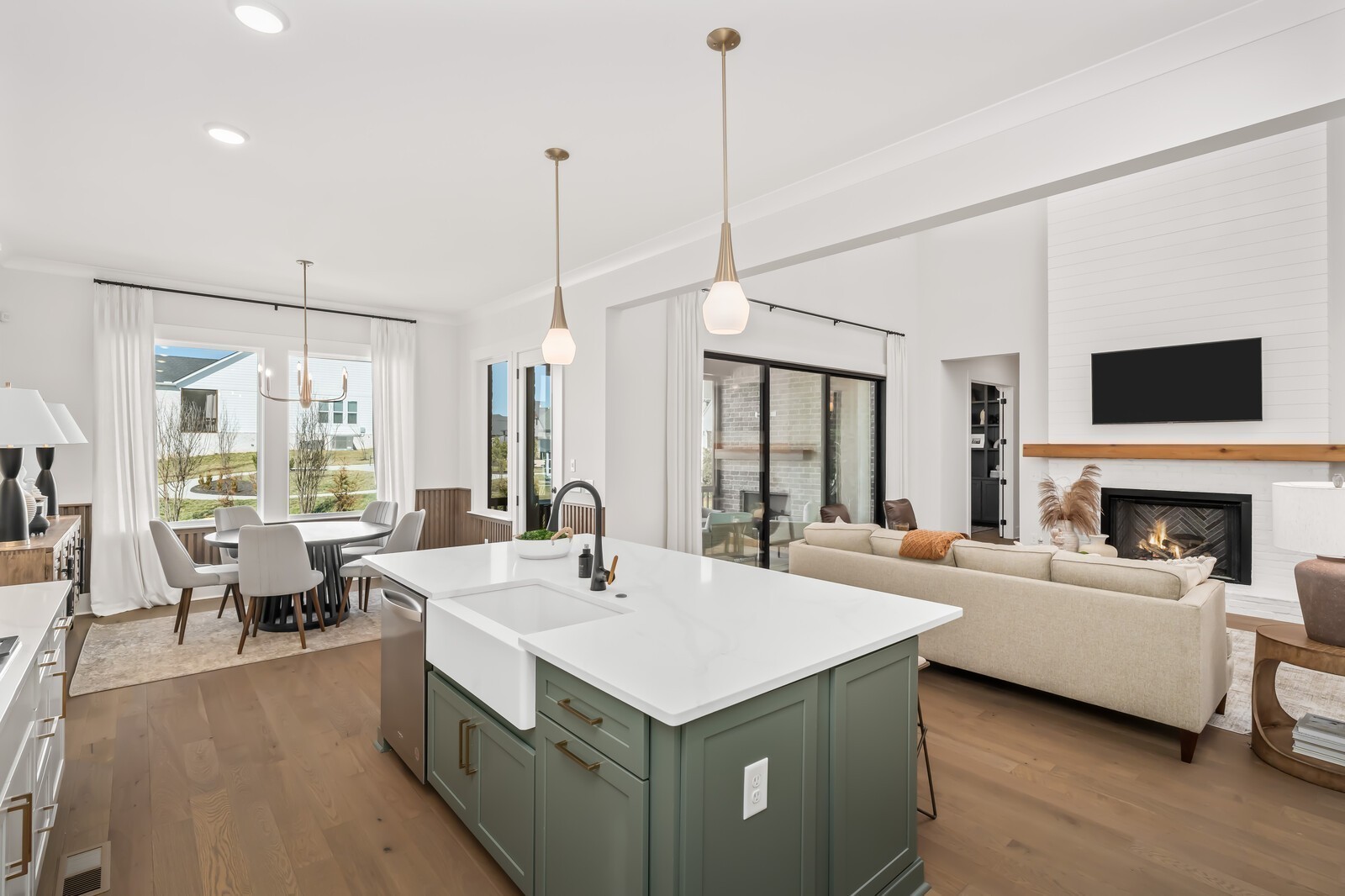 If you are looking for a home which offers much in the way of main floor living, look no further than the Arydale. The Primary and Guest bedrooms, Home Office and Flex room are all located on the first floor. The Primary Suite offers HIS/HER walk in closets, a Super Shower option as well as an abundance of space. Utilize the Flex room for a second home office, play room, library or how it suits you. The spacious Home Office is tucked away for quiet and privacy towards the back of the home. Soaring ceilings are found in both the wide open Foyer and light filled Family room which overlooks a covered patio. Find an oversized Kitchen island and pantry in this beautifully equipped and designed Kitchen. Upstairs you will find two bedrooms and a large Game Room. Media room, fifth bedroom and second story deck are available for an additional investment. Located in Williamson county and zoned for award winning schools, this community can be found ten minutes from I-65 or 5 minutes from I-840. Community amenities for everyone- Pickle and Tennis ball courts, playground and sidewalks for easy dog walking or exercising. A membership to King's Chapel pool and clubhouse are an option. This listing represents base price plus lot premium. Community model home are of this floorplan and is open daily.