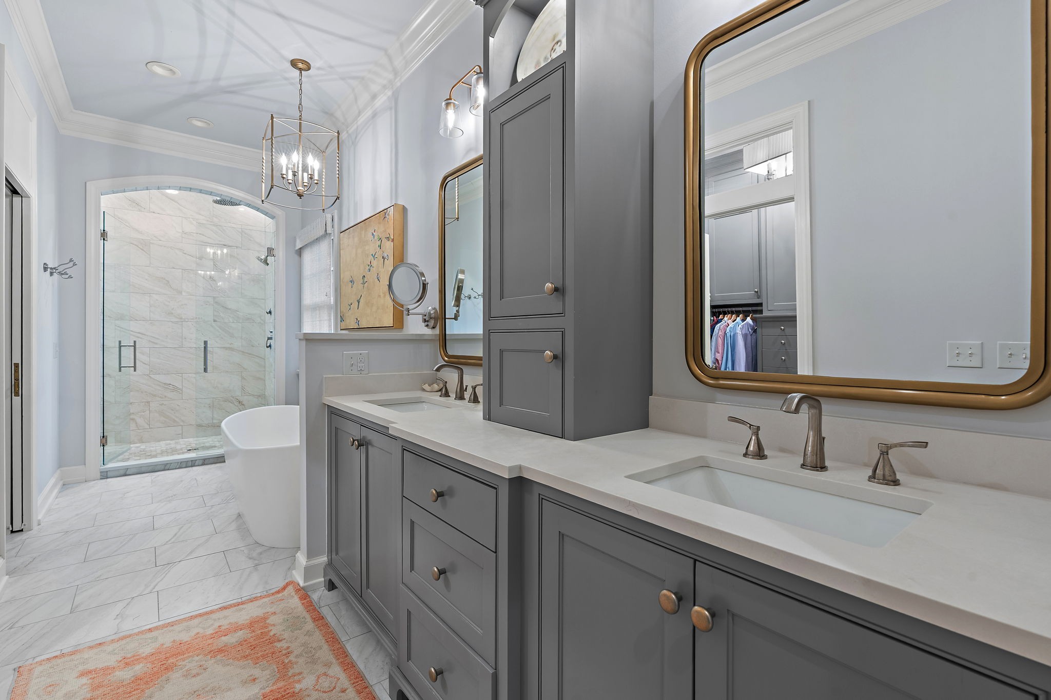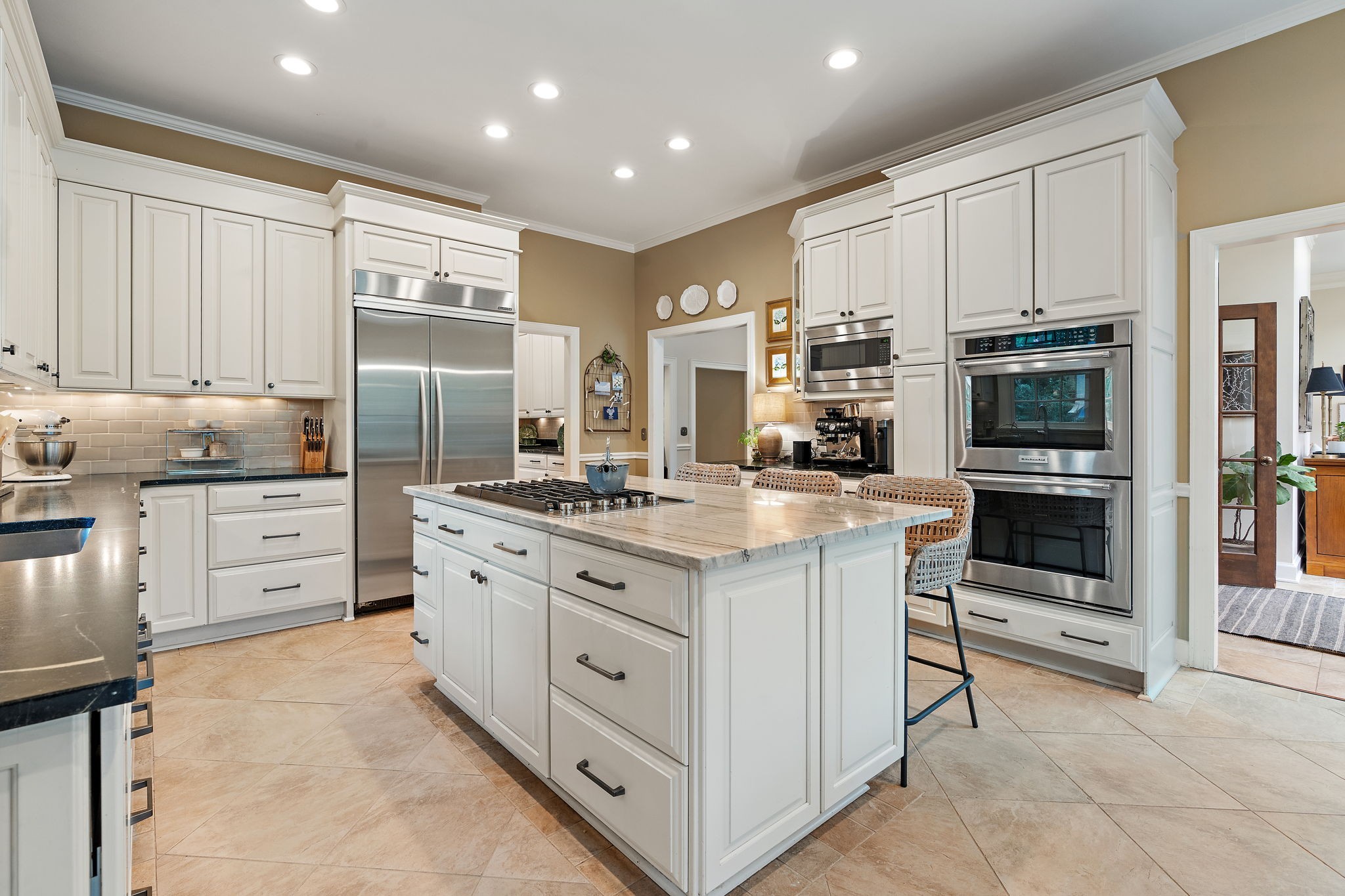 Tall ceilings create a bright, open feel throughout the home. The luxurious primary suite includes a fully renovated spa-like bath (2022) with custom closets, a walk-in shower, dual vanities, heated floors, and a soaking tub. Step outside to the beautifully updated pool area, where all pool equipment has been upgraded. A spacious three-car garage adds convenience and extra storage. This exceptional property is truly turn-key—ready for you to move in and start living your best.