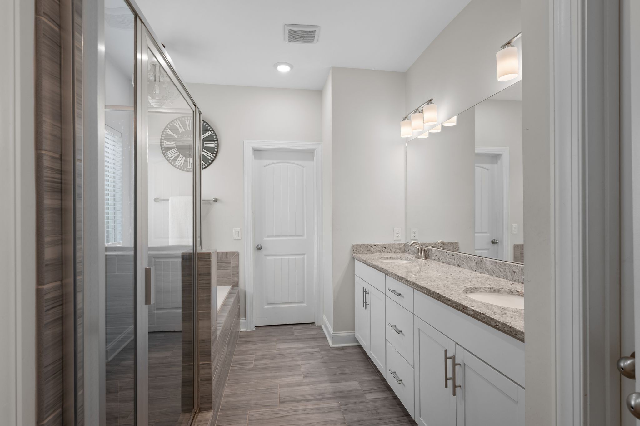 Upstairs includes four bedrooms, highlighted by a luxurious primary suite with double vanities, soaking tub, and separate shower. A versatile loft and laundry room complete the level.