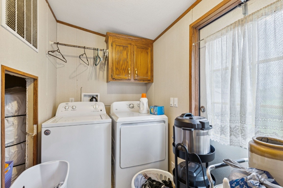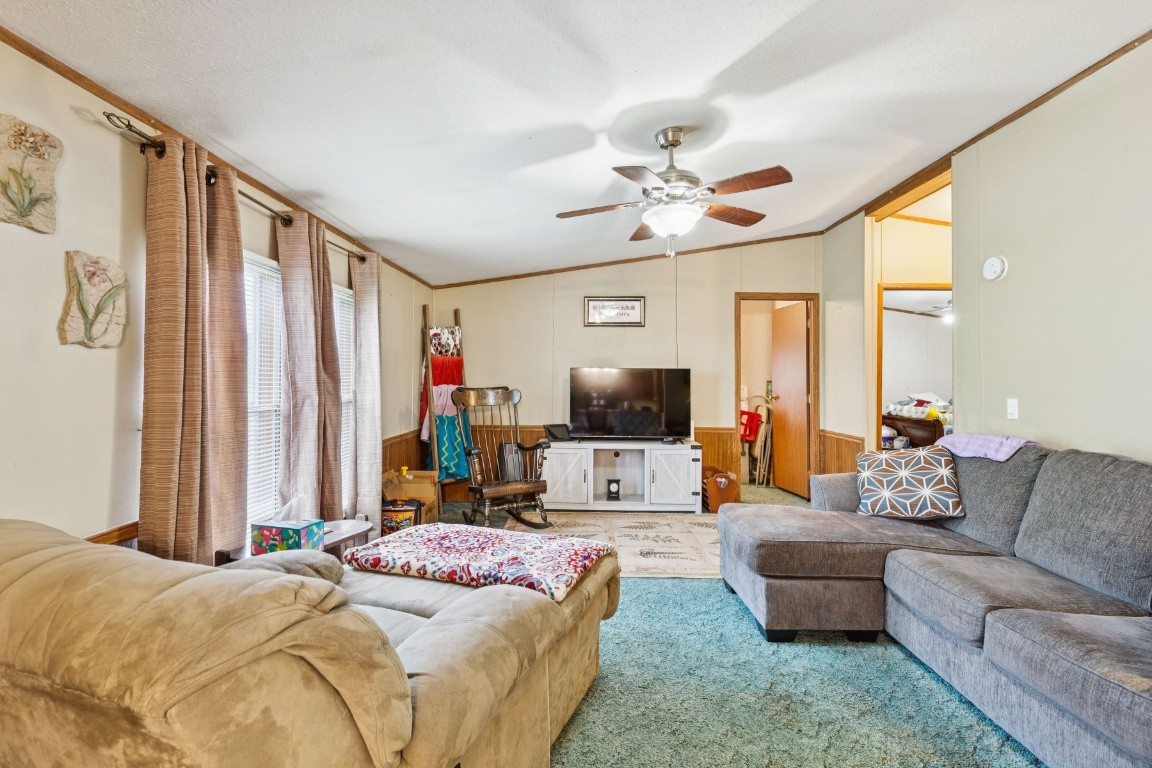 Spacious 4 Bedroom 2 Bath Home on 6 Acres. Nice Open Level Pasture Land. Large Den . Lots of Cabinet Space. Kitchen Appliances Included. Zoned Primary Bedroom has Walk in closet full bath with shower and Soaking Tub. Large Covered Front Porch .