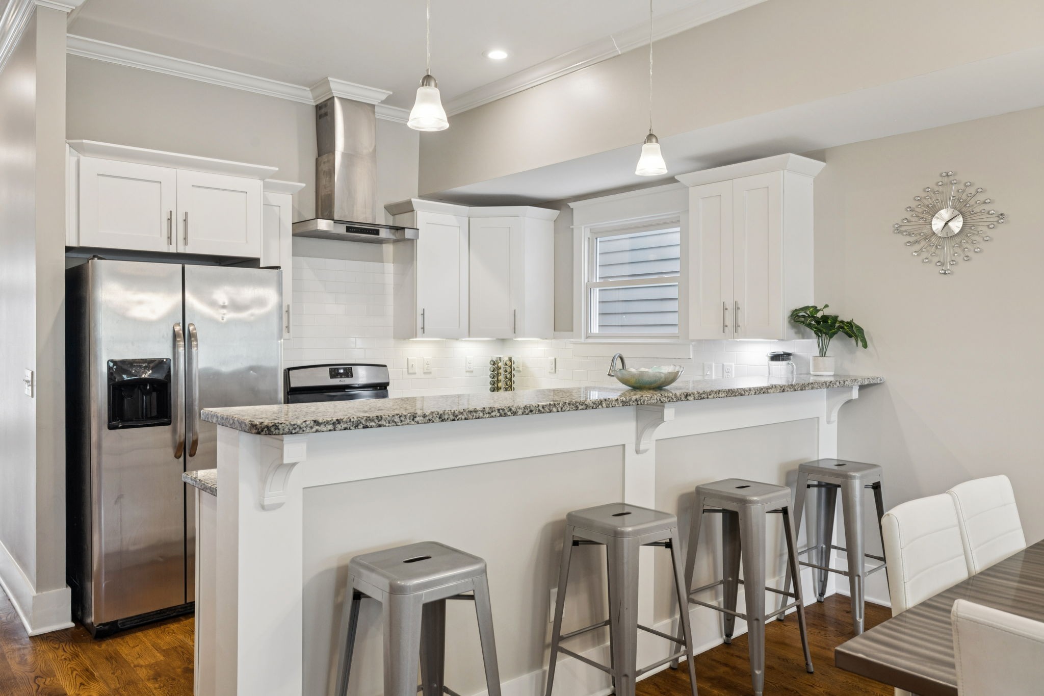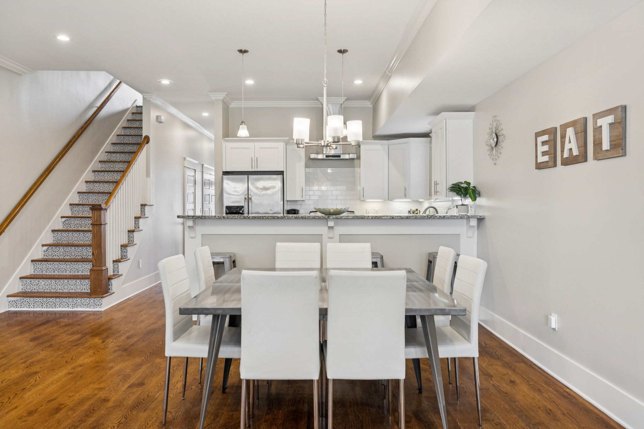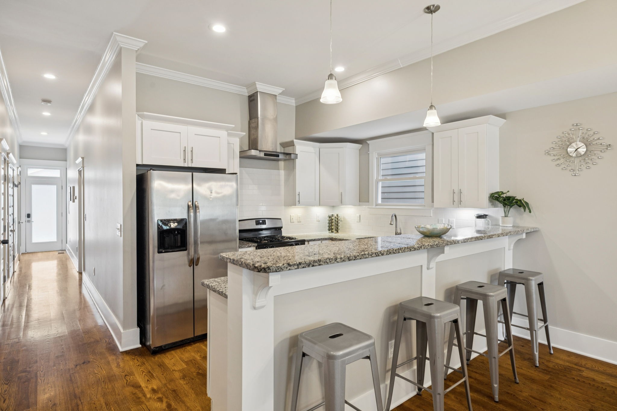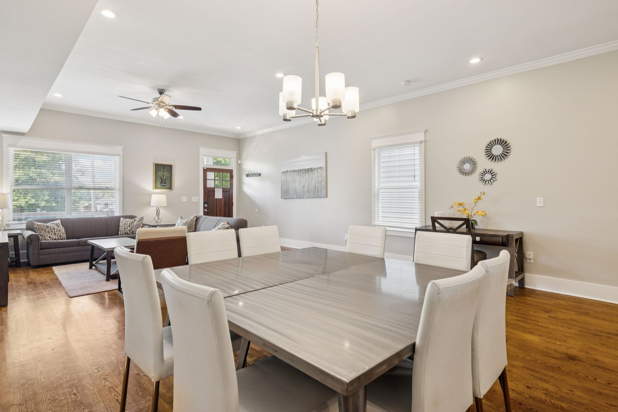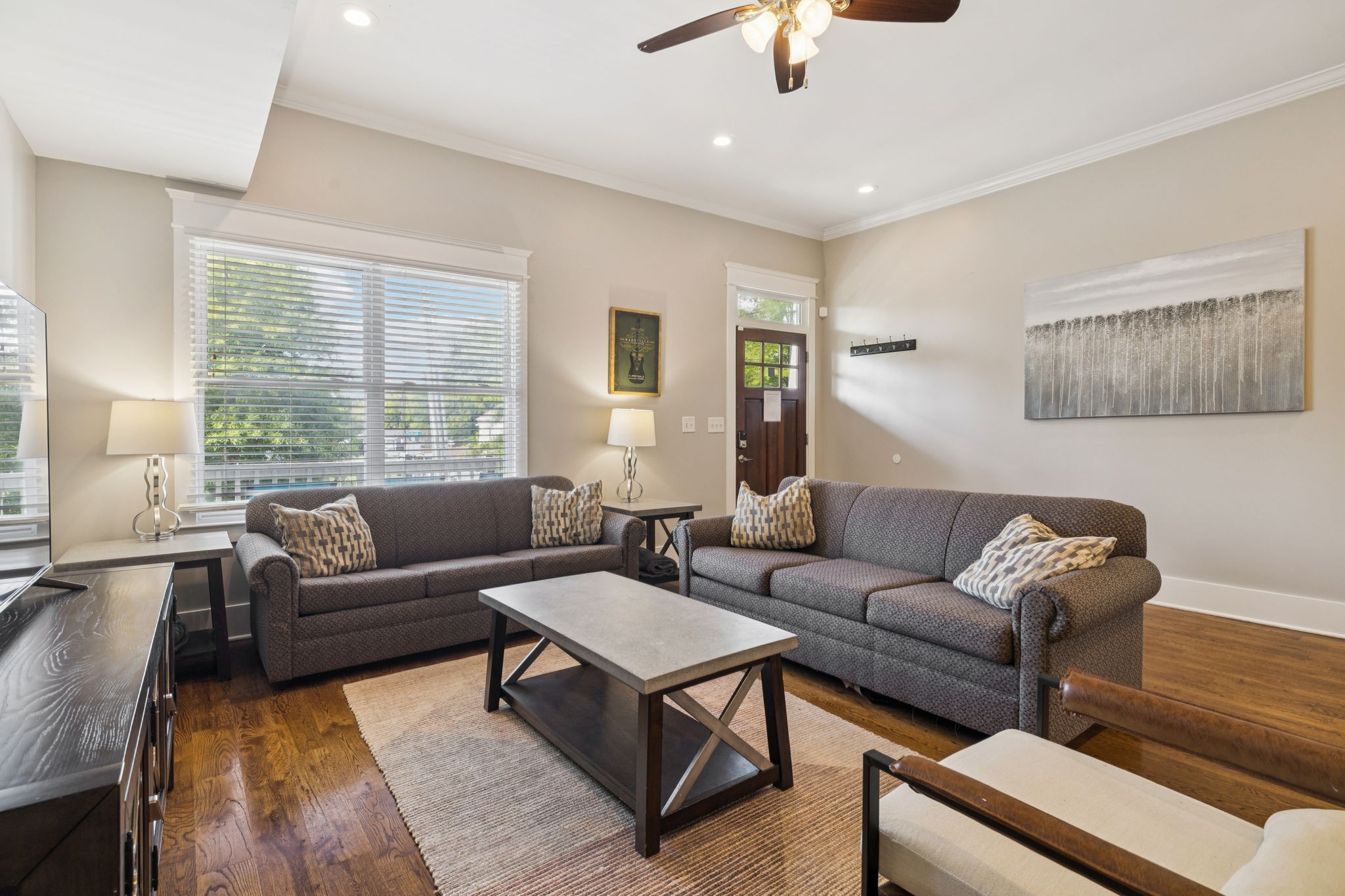 Stylish East Nashville living with your own rooftop deck with downtown views! This modern home at 1413B Meridian St features 4 bedroom, 3.5 bath, an open concept layout filled with natural light, a sleek kitchen with stainless appliances, and a comfortable flow for entertaining. The spacious main floor primary suite offers a spa-like bath and walk-in closet. Upstairs, the bonus room and three bedrooms provide flexibility for guests - one bedroom could even be a second primary bedroom making it an ideal roommate situation. The crown jewel is the rooftop deck perfect for entertaining, relaxing, or taking in those stunning skyline views. Just minutes to local favorites, restaurants, parks, and all that downtown Nashville has to offer. Alley access and private covered parking. Home can be sold furnished.