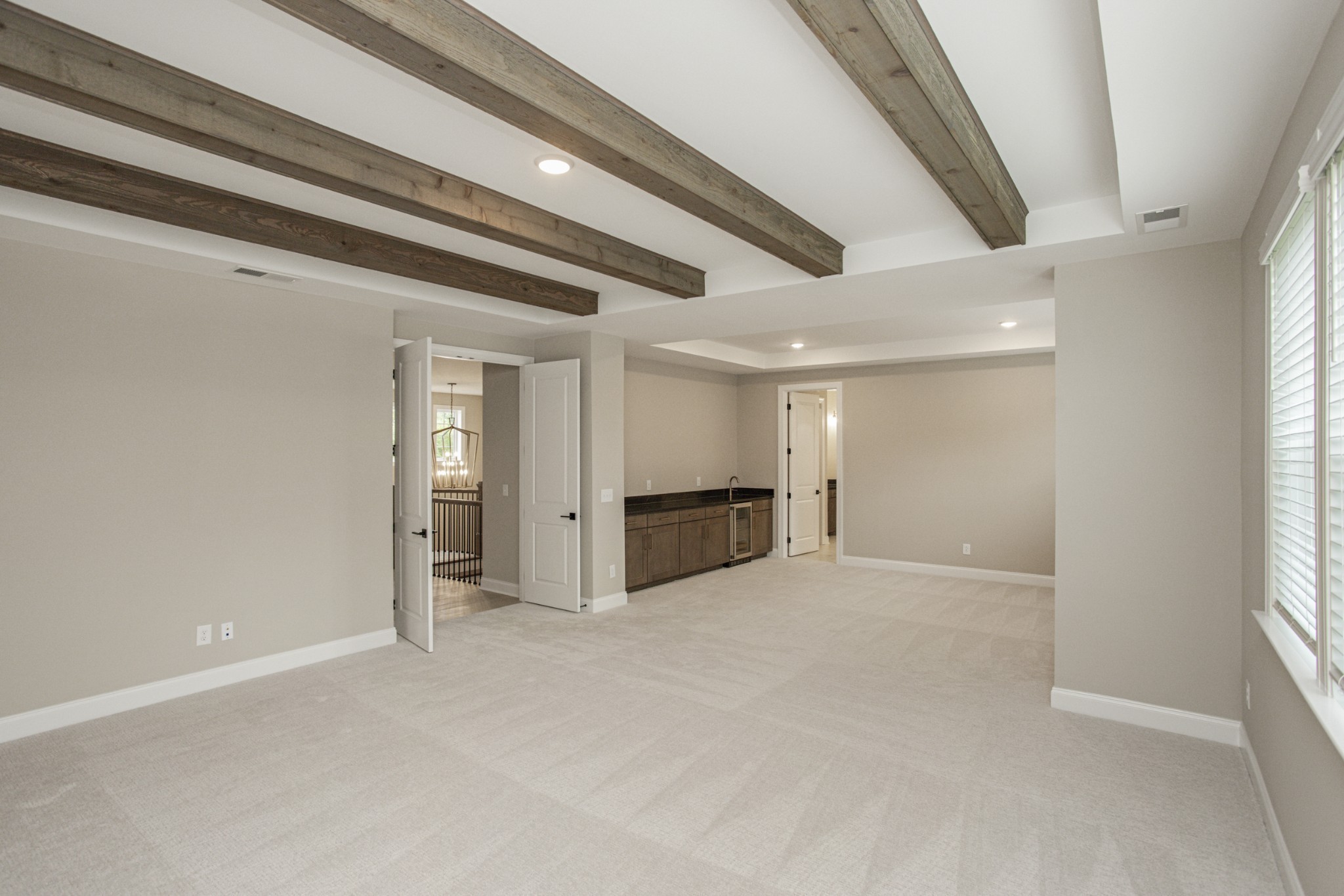5 spacious bedrooms, 4 full bathrooms, and a 3-car garage, this home offers the perfect blend of elegance and functionality. From the moment you step into the grand two-story entryway, you’ll be captivated by the open layout and upscale details. Tray and beamed ceilings add architectural interest to the expansive living and dining areas, creating a warm yet sophisticated atmosphere.