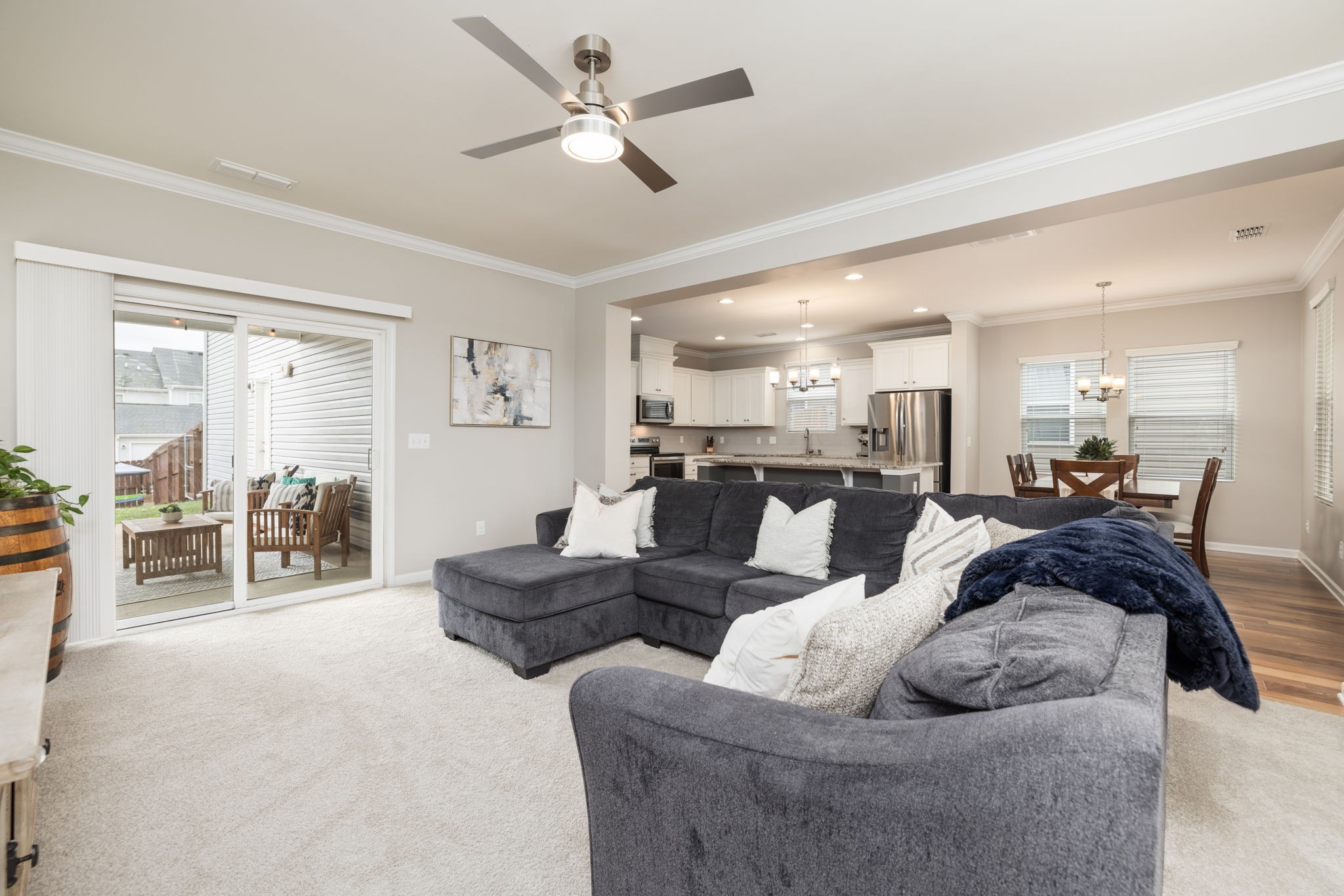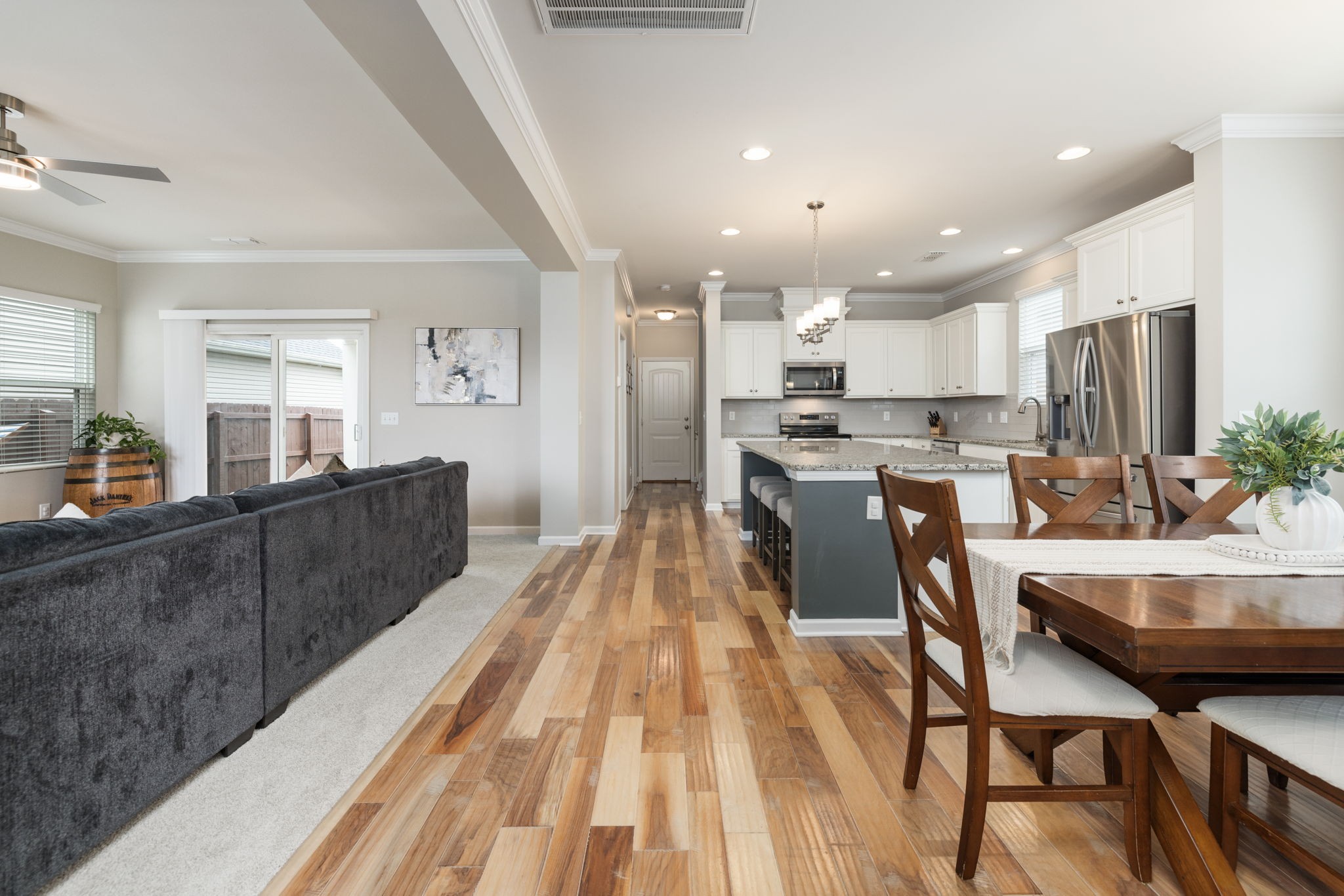 The perfect move-in ready home in one of Hermitage’s most sought-after, amenity-rich communities. Entertainer's open floor plan leading out to a wonderful covered back patio with white lights and a large back yard with a newly stained privacy fence...just in time for fall enjoyment with the kids, the dogs and football. Multiple upgrades throughout including beautiful hardwoods, designer accent walls, new bathroom lighting and mirror, laundry room cabinets / hanging bar, tankless water heater & more. Beautiful white kitchen with stainless appliances, subway backsplash, walk-in pantry and new microwave. New carpet in the great room and fresh paint throughout. Three bedrooms with walk-in closets up including a peaceful primary suite with lovely tray ceiling, full-height XL tile shower, water closet & generous walk-in closet. Last but not least, don't forget the awesome 420 sqft bonus room. A bonus so spacious, it's currently a guest room, play room, office and workout space! Rear two car garage with additional storage and lengthy driveway for a plethora of parking. Enjoy walkable sidewalk access to the neighborhood pool, clubhouse, fitness center, walking trails and outside the neighborhood to Salvo's Pizza & the yummy Flour Your Dreams Coffee and Bakery. Just minutes to beautiful Percy Priest Lake & Nature Area, highway I-40, BNA Airport, and all the best Nashville has to offer.