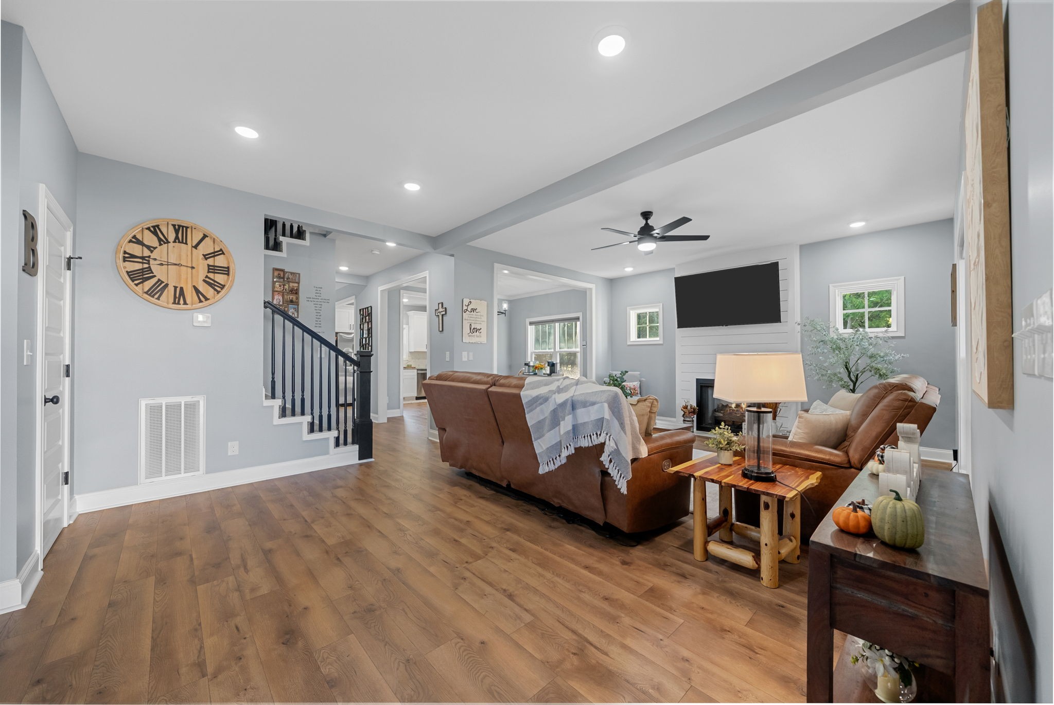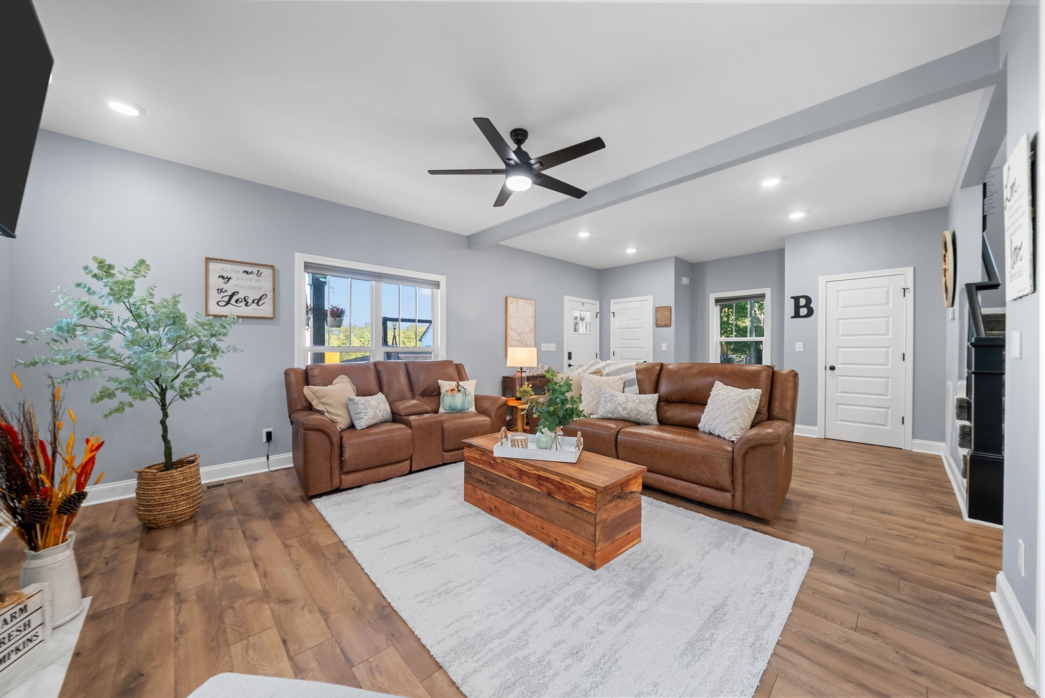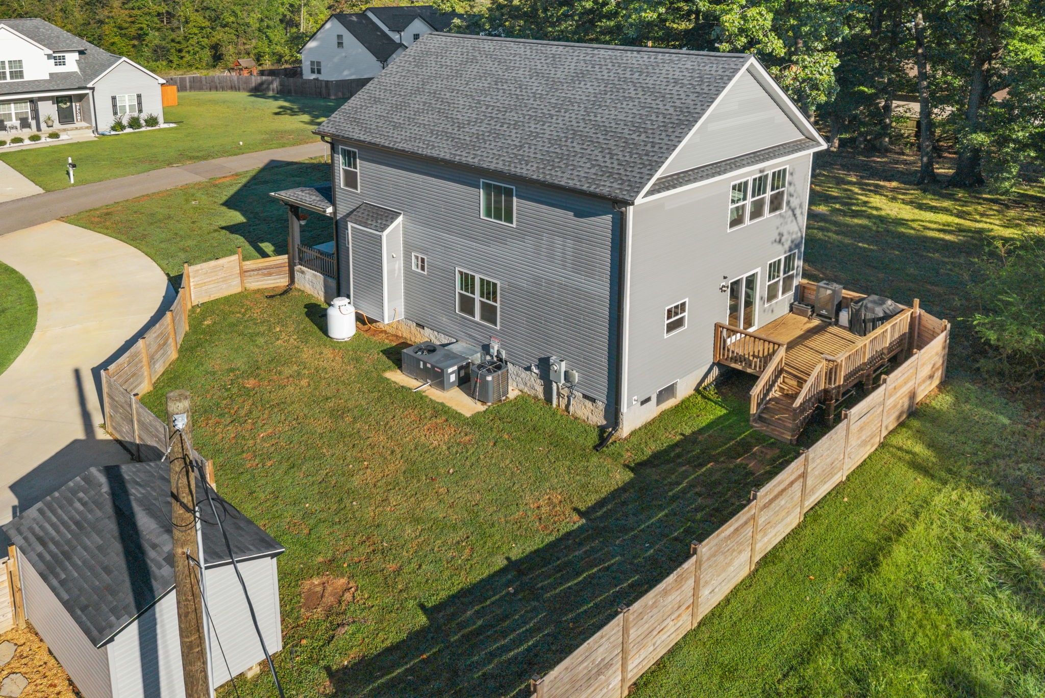 NO HOA! (a rare find) BRING YOUR CHICKENS! BRING YOUR RV! BRING YOUR BOATS! No side or backyard neighbors, with adjacent new construction homes! This immaculate home is in top notch condition, like NEW. Located on a quiet street, yet in a prime location! Minutes to downtown Clarksville, mins to Liberty Park and Boat Ramp, mins to HWY 12, mins to Publix and Lowes, plus Walmart, Ross and Marshalls all close by! This stunning 3 bed 2.5 bath home sits on a large corner lot, featuring a utilitarian circle driveway with room for all your car and toys! Park your RV or your Boat with ease! From the expansive covered southern front porch to the private fully fenced backyard, this home has it all. This floorplan has GREAT FLOW, must see in person. Living room and entry are spacious with grand ceilings and a spectacular gas fireplace as the centerpiece. The chefs kitchen with granite counter tops, stainless steel appliances and trendy ceramic tile backsplash is open to the formal dinning room for easy entertaining and function. The breakfast nook or sitting area off kitchen is flooded in natural light, a trend throughout the home. All windows have luxury upgraded cordless motorized blinds, with remotes for added privacy and style! All rooms have customized lighting and ceiling fans, including on the front porch and automatic under cabinet lights! The primary bedroom features tray ceilings, accent lights, huge walk-in closet featuring built in custom shelving! Plus a spa-like primary bathroom suite with separate soaking tub and custom tiled shower with sliding glass door and double sink vanities. The backyard is a gardeners oasis, with above ground garden beds, Amish 12x10 gardening shed and lush grass for pets or chickens to roam! If you are looking for freedom from an HOA, but a home that's close to everything and has everything, this is it!