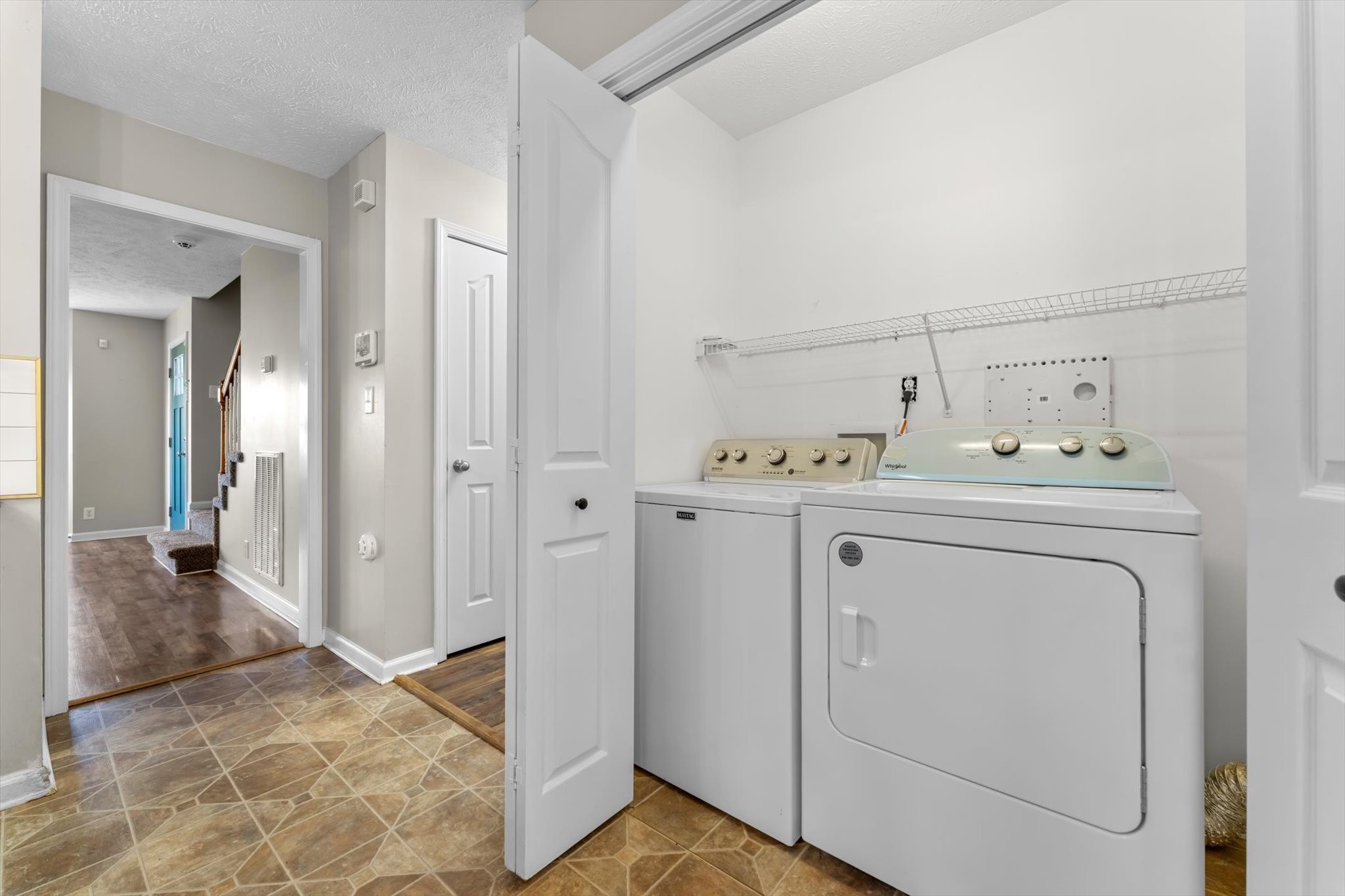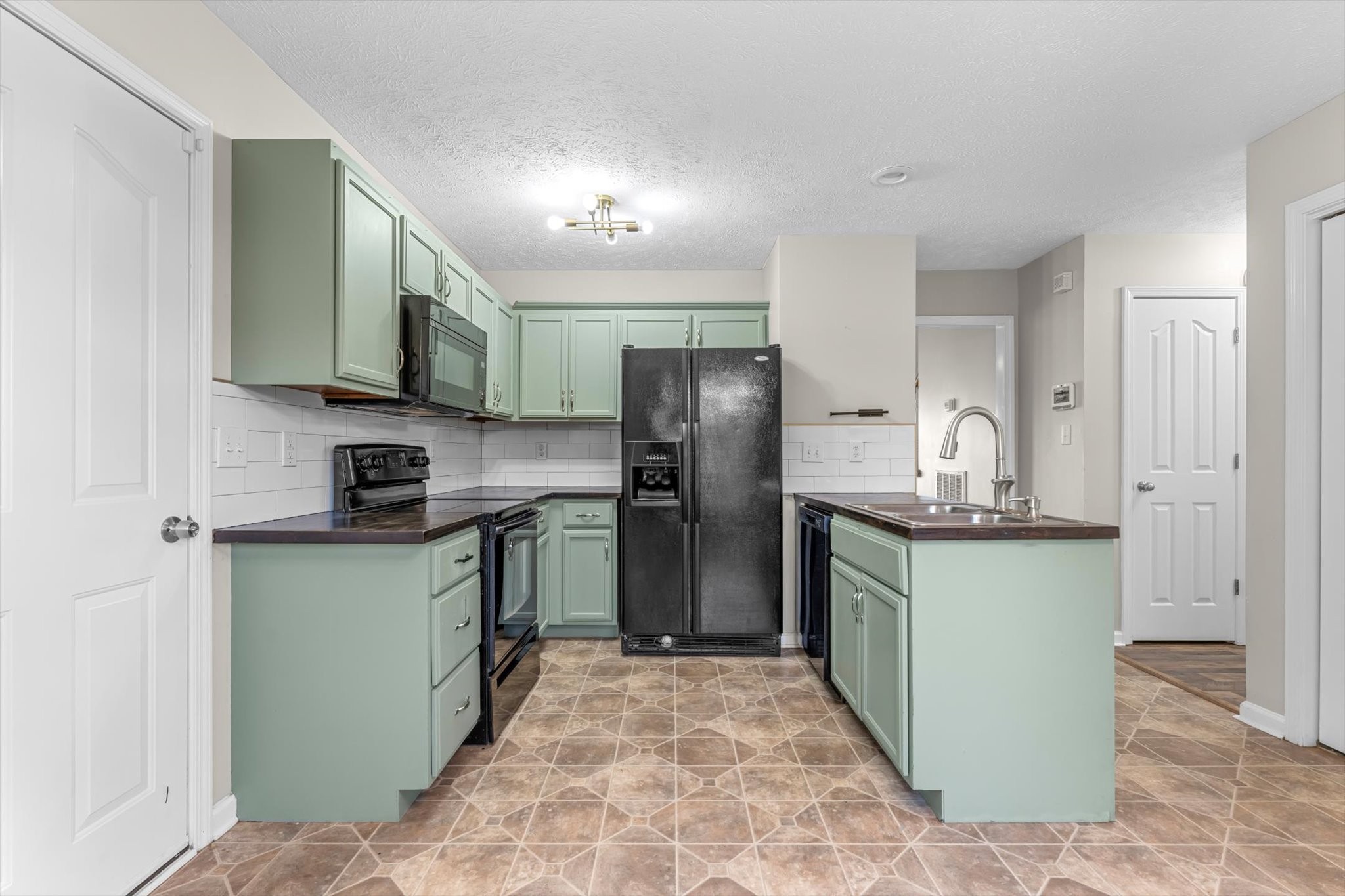 Inside, you’ll love the LVP flooring throughout (yes, no carpet to worry about), updated light fixtures, and a sunny bay window that brightens the living area. The kitchen features stylish sage green cabinets, sleek black appliances, and a subway tile backsplash, modern, fresh, and ready for your favorite recipes. Enjoy the added bonus of an included washer and dryer for your convenience.