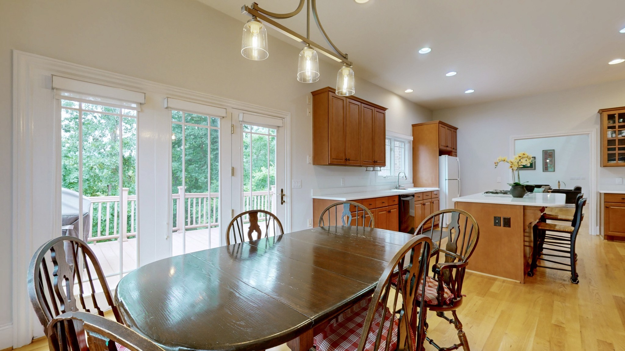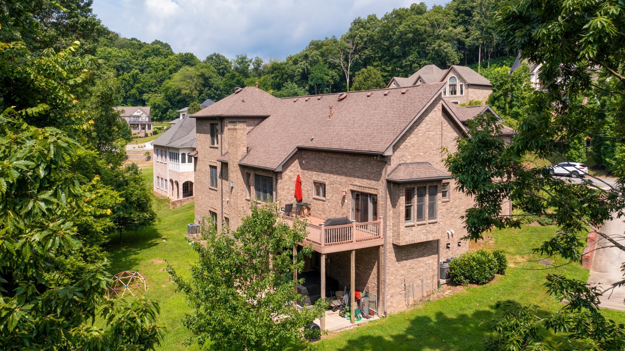 Nestled in the prestigious West Meade neighborhood of Nashville’s 37205, this expansive 5-bedroom, 5-bathroom estate offers unparalleled space, elegance, and versatility. Gleaming sand-and-finish hardwood floors grace the main and upper levels, complementing the soaring ceilings and cozy gas fireplace in the grand great room. The spacious kitchen is a chef’s dream, featuring a large center island with a gas cooktop, custom built-ins, ample cabinetry, Silestone quartz countertops, and a walk-in pantry with a convenient dumbwaiter to the lower-level storage. The main-level primary suite, featuring a tray ceiling, offers a serene retreat, while a guest suite includes a spacious roll-in shower for accessibility. Upstairs, find three well-appointed bedrooms, a versatile loft area, and a large bonus room with a charming beadboard ceiling, perfect for recreation or relaxation. The walk-out lower level provides flexible spaces for one or two additional bedrooms, a wine cellar, or a media room, plus two expansive storage rooms. Enjoy endless comfort with an instant hot water heater and recirculating pump. With stunning views and abundant storage, this sophisticated West Meade residence is ready to become your forever home. Schedule a showing today!