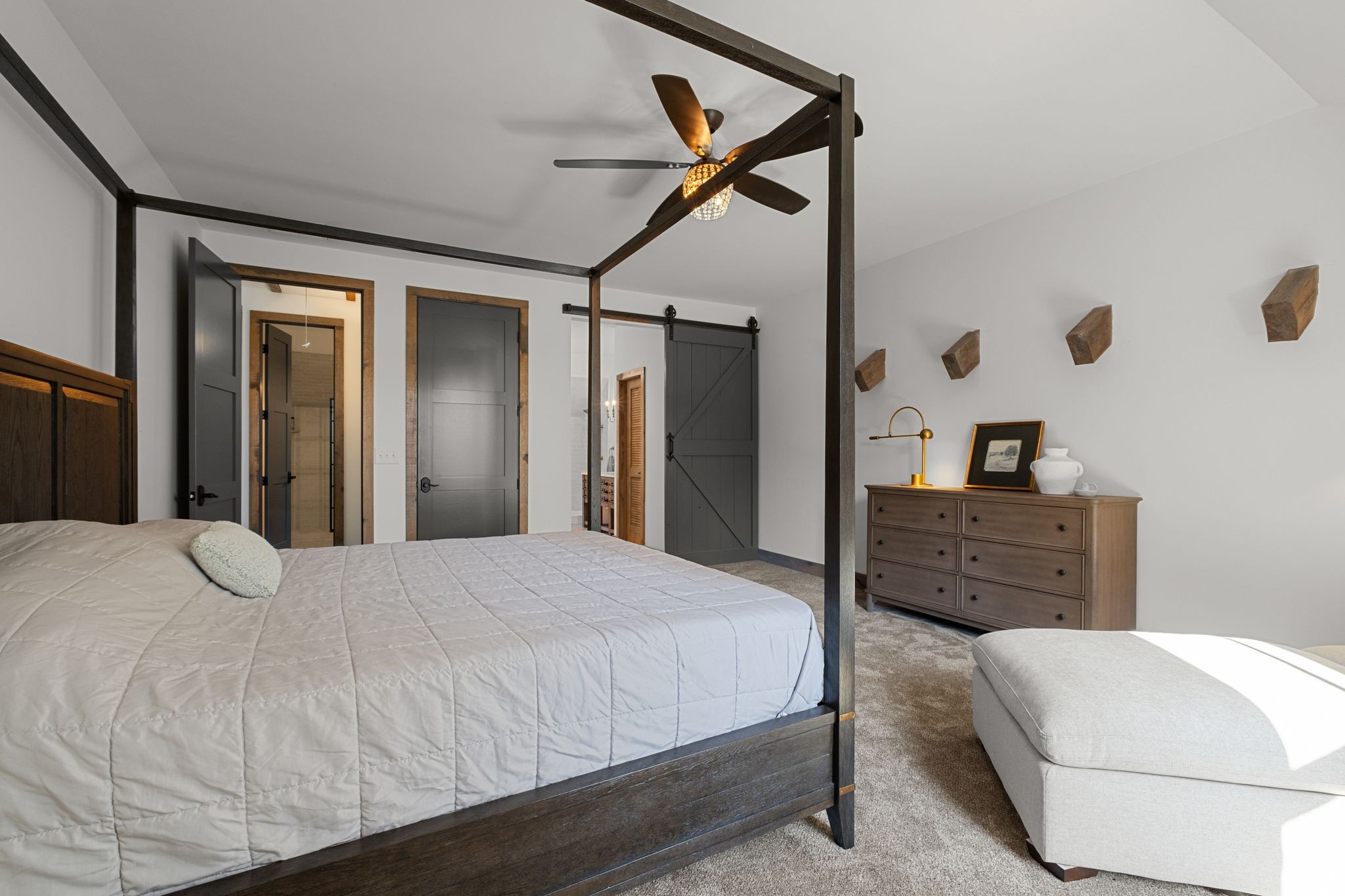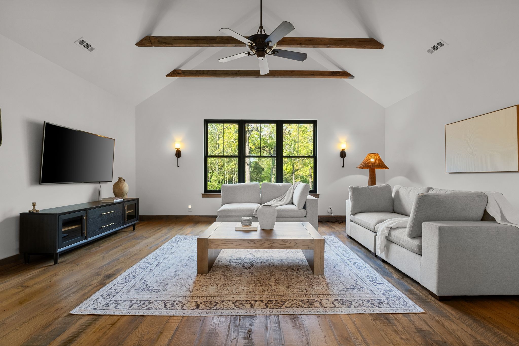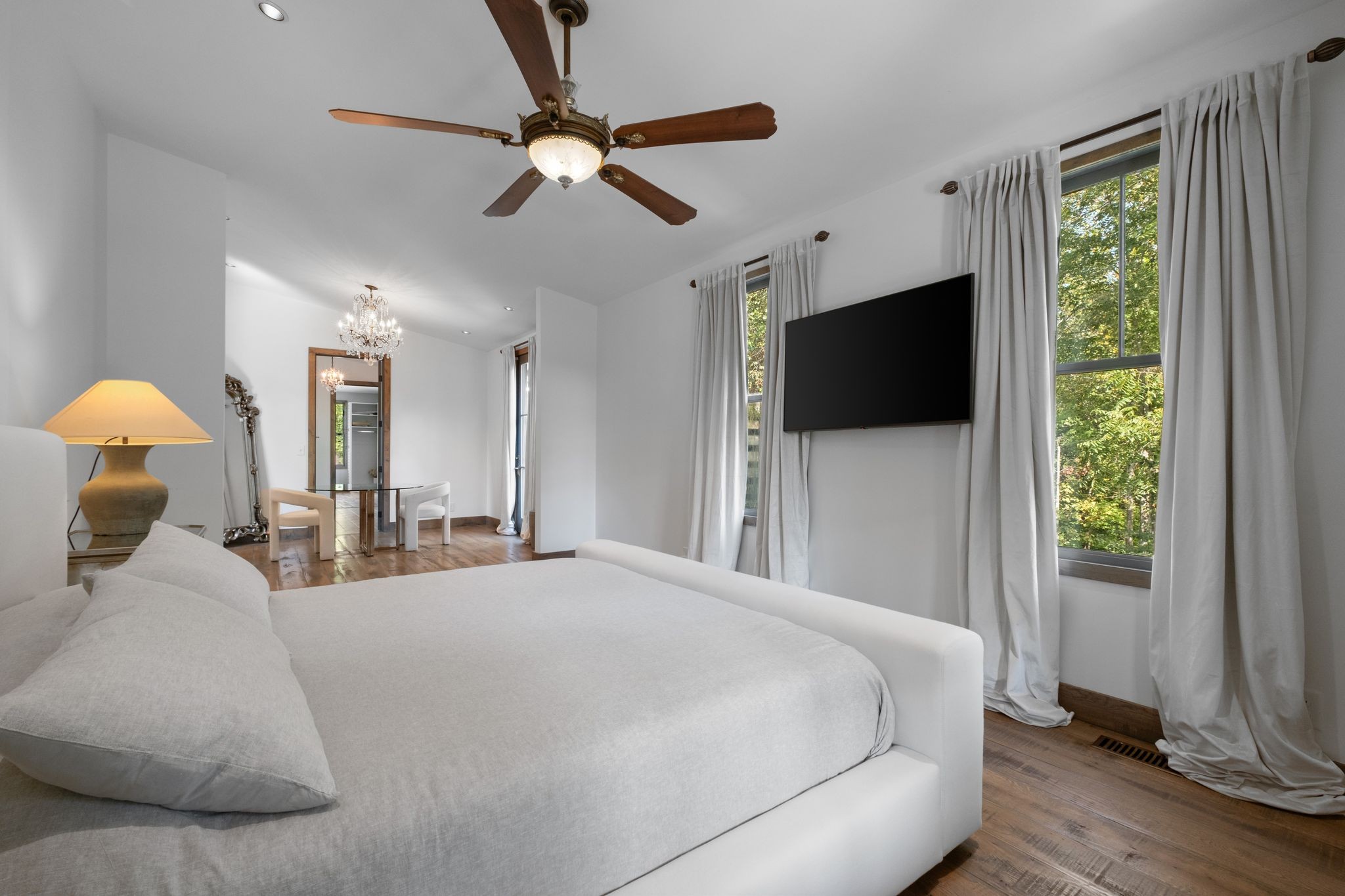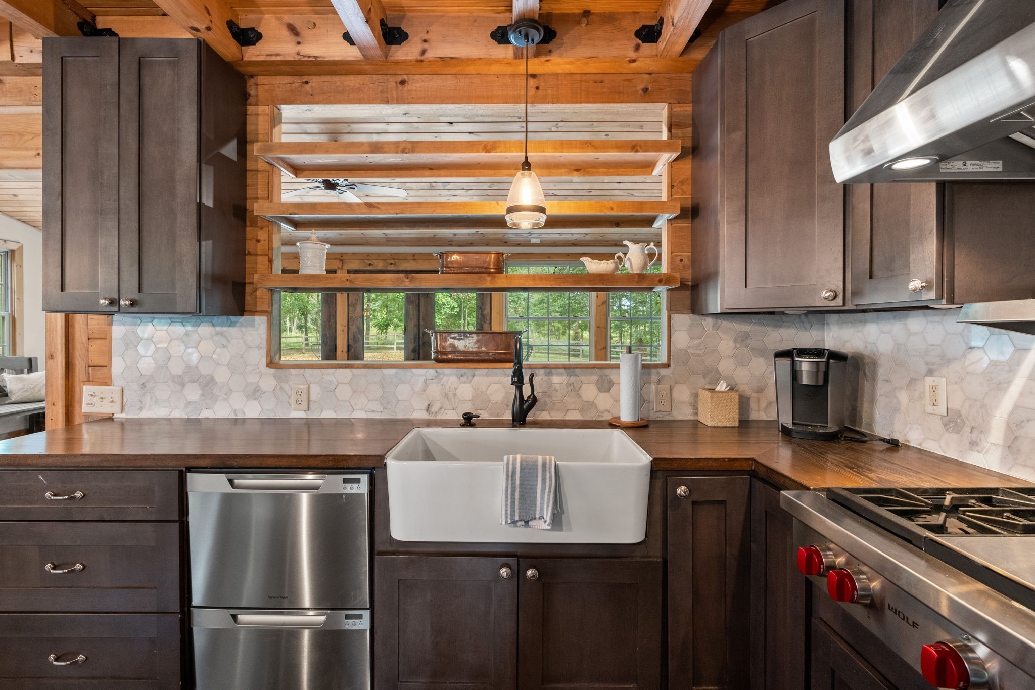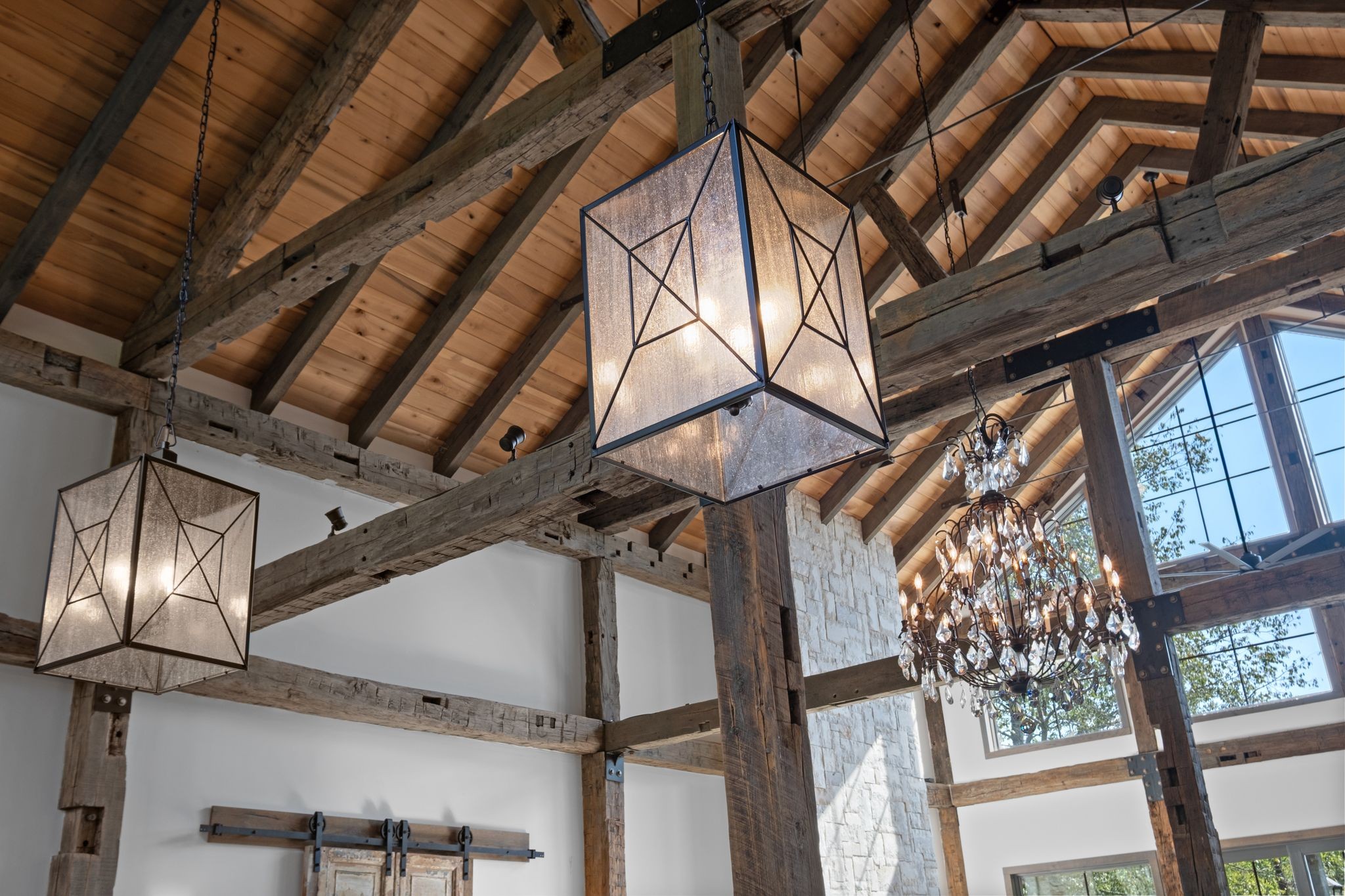 Captivating rustic retreat on 13.88 acres with two stunning homes (totaling 7975 SF) in the rolling hills of Tennessee. Upon entering the 5,371 SF primary residence, the ballroom inspired great room instantly takes your breath away with 28-foot ceilings, 150-year-old Montana timber beams, & abundant natural light that creates a space both grand & welcoming. The chef’s kitchen features Bertazzoni appliances & open counters designed for effortless cooking while family and friends gather nearby. The thoughtfully curated grand scullery adjacent to kitchen allows for larger-scale gatherings out on the terraces or in the great room. Terracotta stone and Restoration Hardware chandelier lighting throughout the home balances modern elegance with timeless beauty. Seventy-year-old haveli mansion Indian teak doors open into the main floor primary suite with a spa bath designed for relaxation. An additional first floor bedroom with full bath offers added space and flexibility, currently being used as a private office. The French Quarter floating staircase leads to three spacious bedrooms, including a secondary primary suite. The expansive studio on the second floor with its own full bathroom directly across, is flooded with natural light & can be used also as an additional bedroom, a home office, lounge or creative retreat space. Expansive 1,500 SF porches & terraces with a swim spa provide a perfect place to relax outdoors surrounded by nature or under the stars. Across from the primary residence, a charming 2604 SF second home with 3-bedroom, 2.5-bath is nestled on 6.88 acres. It features an expansive sunroom for morning coffee, a commercial-grade kitchen with Wolf appliances, downstairs primary & a peaceful backyard retreat with views of sweeping meadows-protected by The Tennessee Land Trust ensuring permanent privacy & quietude. Together, these homes create a private sanctuary where every space blends warmth, light & thoughtful design to embrace the beauty of country living.