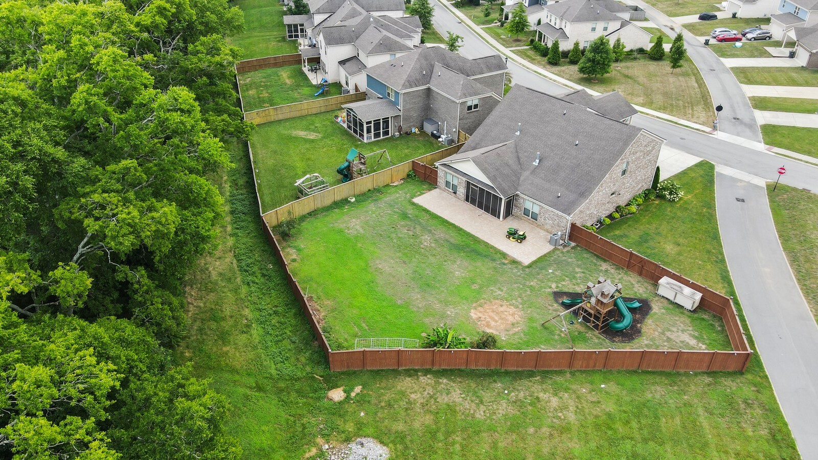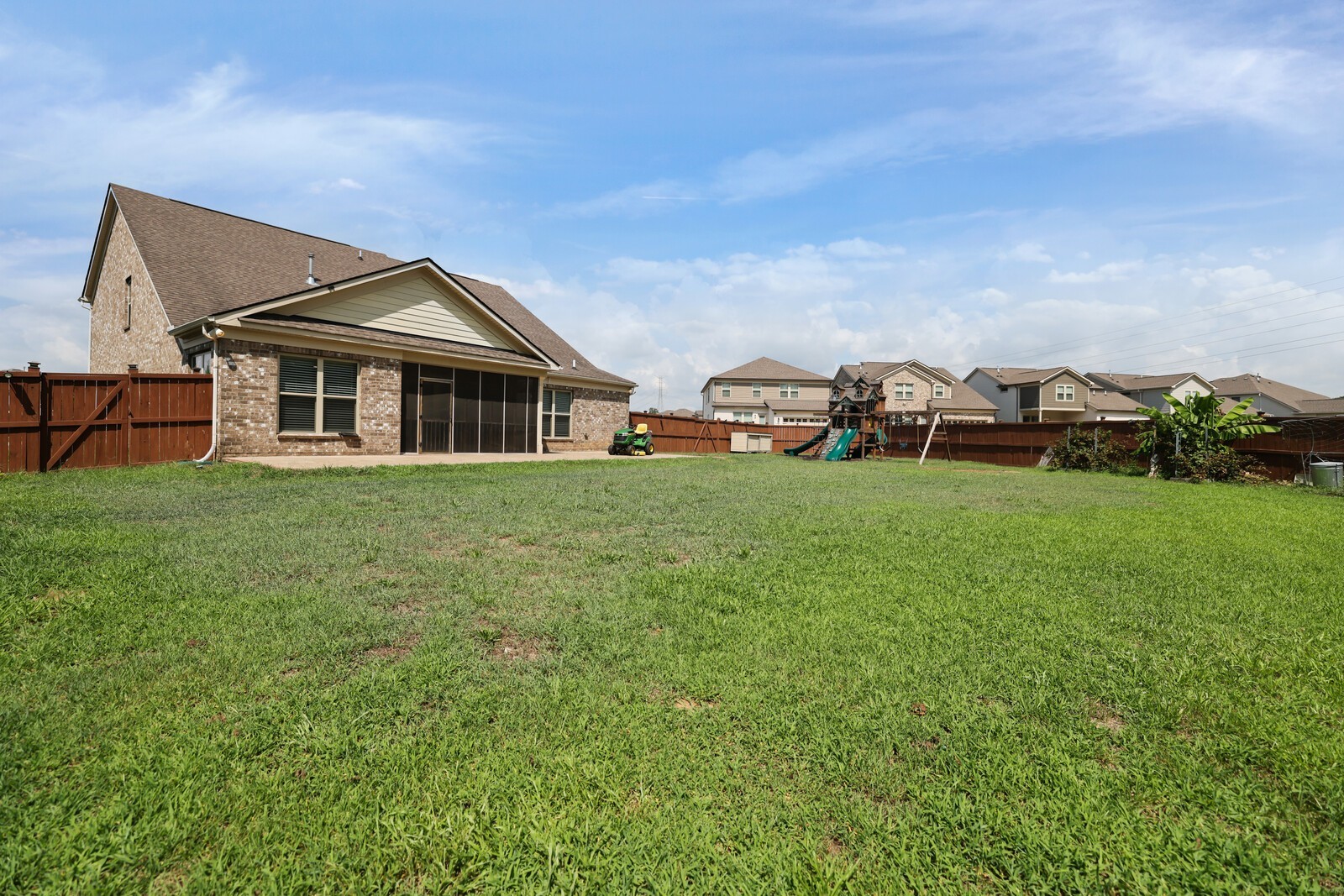 Welcome to this spacious and thoughtfully designed 4-bedroom, 3.5-bathroom home offering 3,666 square feet of comfortable living. As you step inside, you're greeted by a formal dining room perfect for hosting, and a home office with elegant French doors just across the way. A convenient drop zone and a second workspace in the laundry room make daily routines a breeze. The open-concept main living area features a bright kitchen with a large island, farmhouse sink, and an attached eat-in dining area, seamlessly flowing into the living room with a stunning stacked stone fireplace. The main-level primary suite includes a trey ceiling, a spacious walk-in closet, and a luxurious en-suite bath with dual vanities. Upstairs, you'll find comfortable guest bedrooms, a versatile loft space with a wooden curtain feature, and access to a private terrace for enjoying morning coffee or sunset views. Step outside to your screened-in patio and adjacent open patio, perfect for entertaining or relaxing, while the fenced-in backyard offers a dedicated play area. This home combines function and flexibility all in one! Up to 1% lender credit on the loan amount when buyer uses Seller's Preferred Lender.