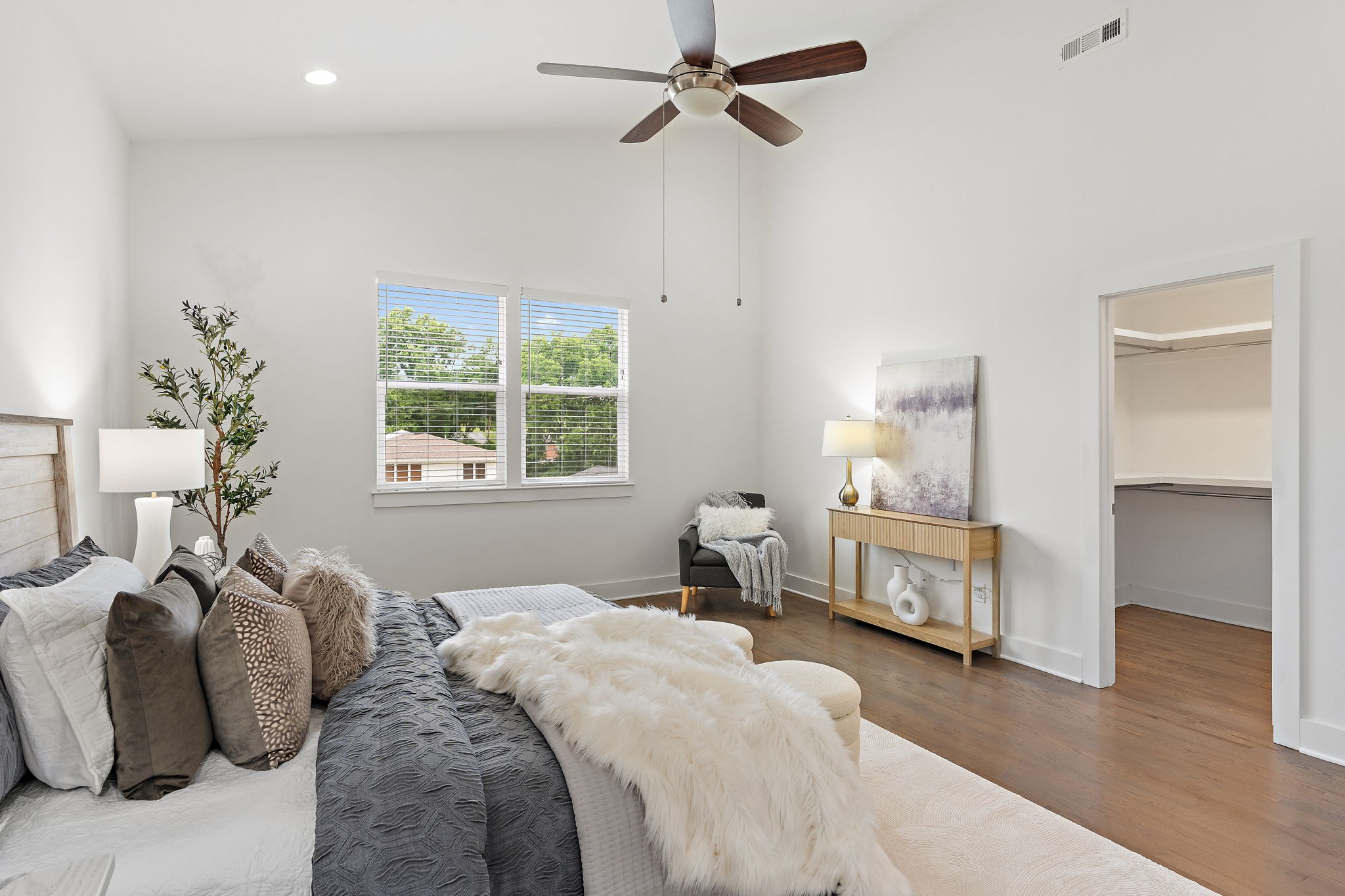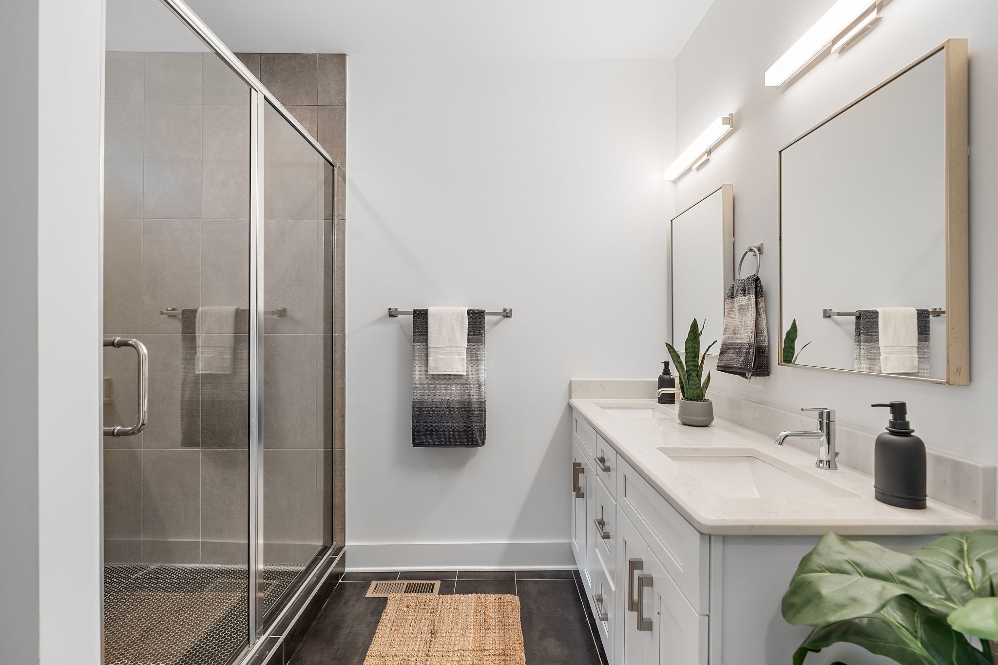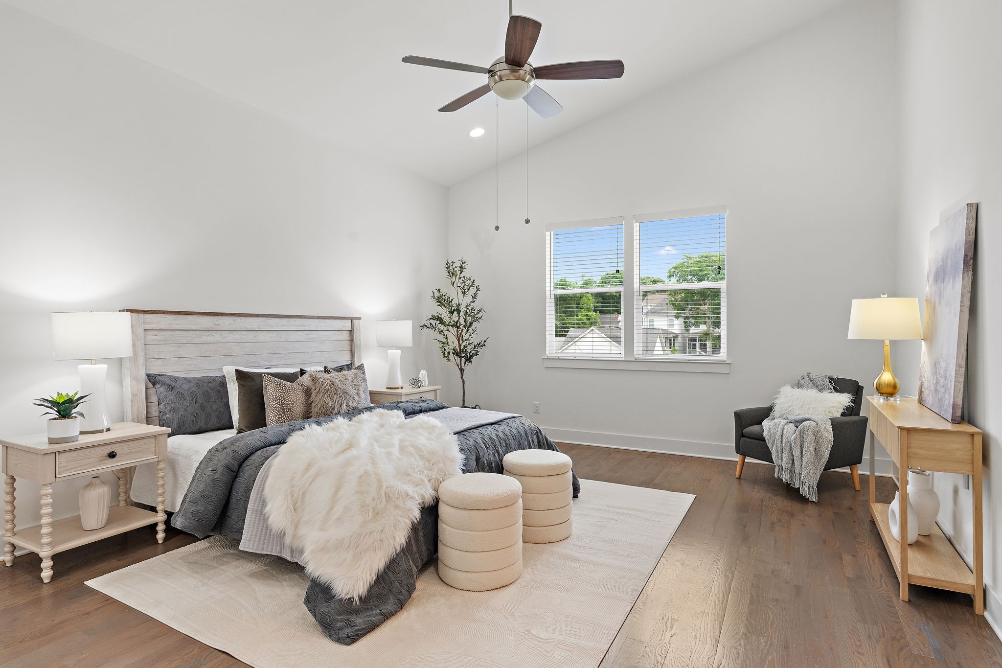 Upstairs, the spacious primary suite includes vaulted ceilings, dual vanities, and a walk-in shower, creating a retreat-like experience. Each bedroom has its own full bath, ideal for guests or roommates.