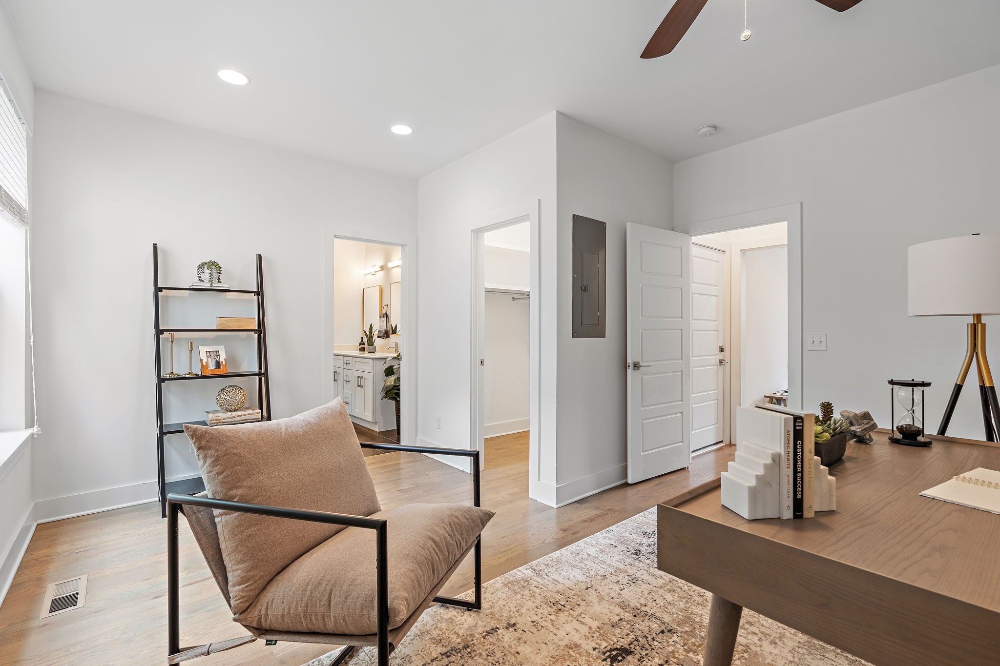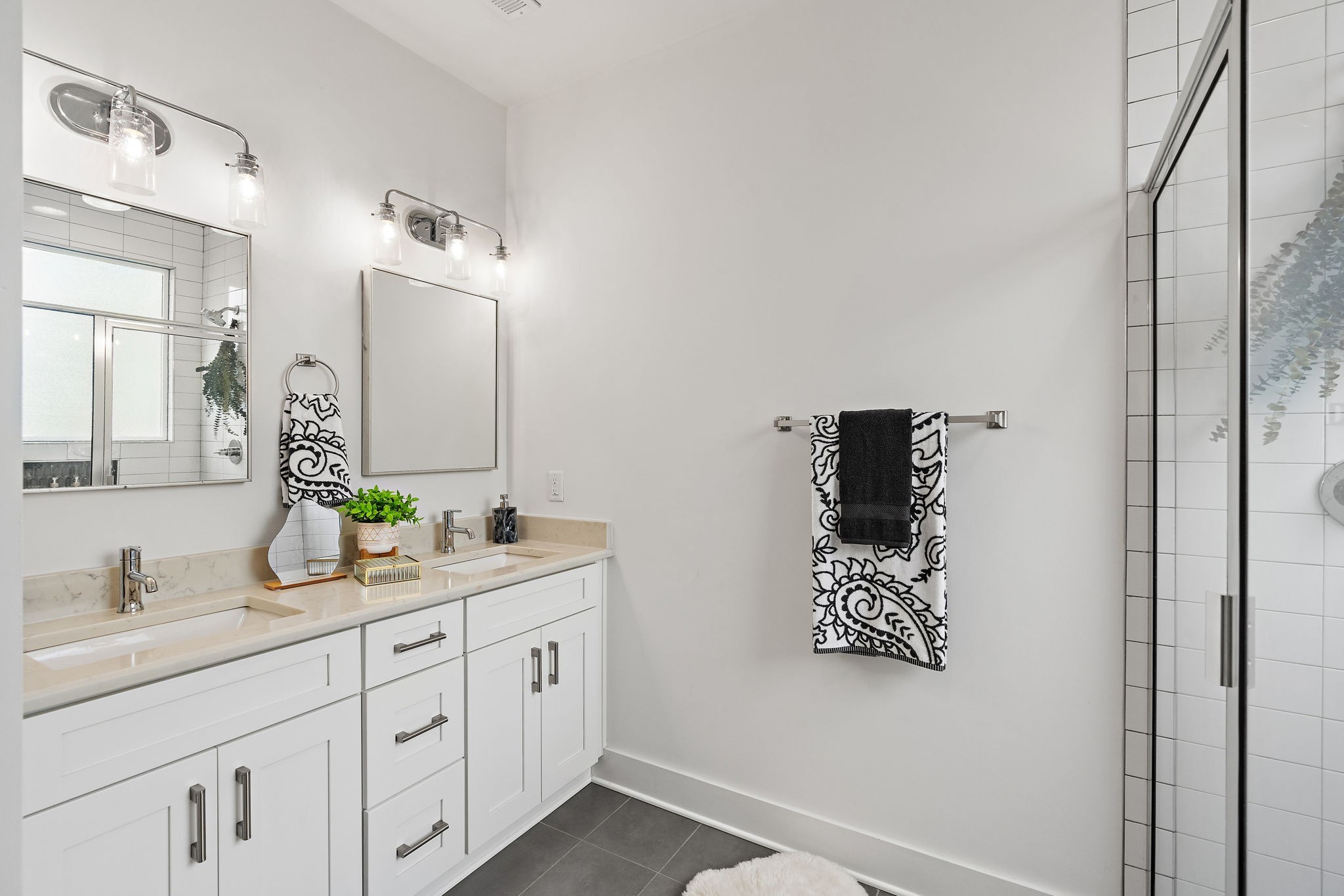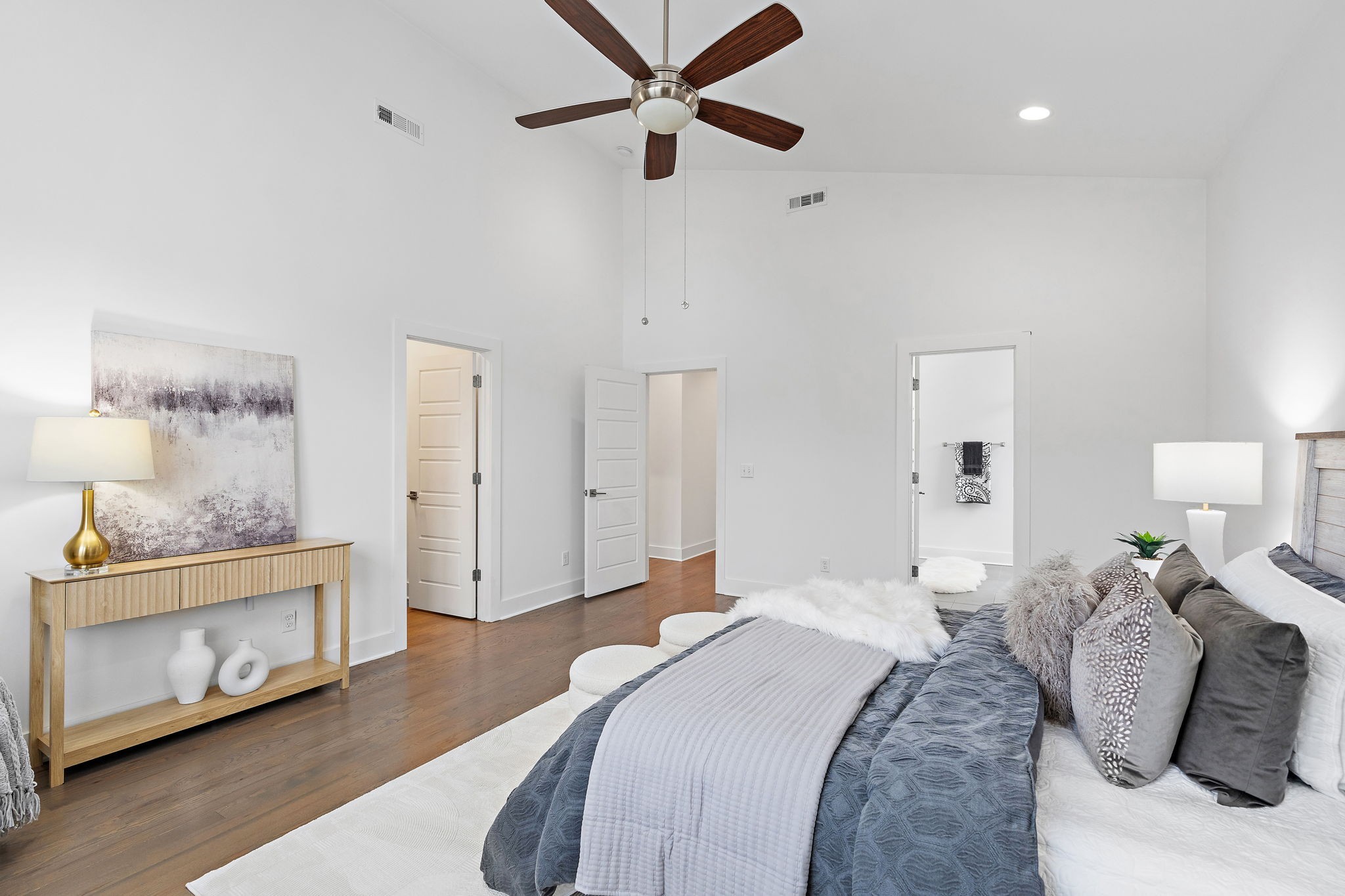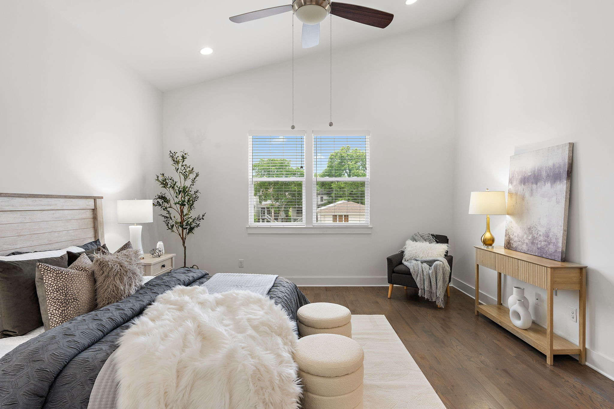 Upstairs, the spacious primary suite includes vaulted ceilings, dual vanities, and a walk-in shower, creating a retreat-like experience. Each bedroom has its own full bath, ideal for guests or roommates.