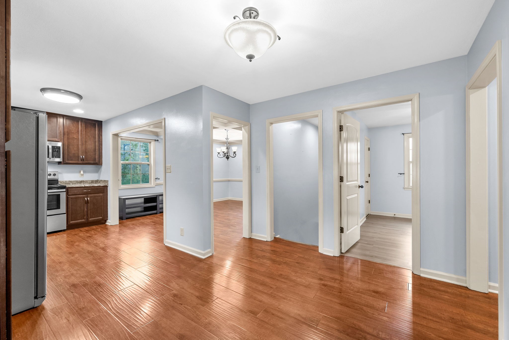 Complete RENO ALL NEW EVERYTHING IN 2018!! From the roof and siding to the walls and floors, this seller spared no expense! Enjoy peace of mind with an updated HVAC, water heater, fresh neutral paint, doors, windows, and deck, plus so much more! Inside, the kitchen shines with updated cabinetry and stainless-steel appliances, including a side-by-side refrigerator with ice and water in the door. The formal dining room is a true showstopper with elegant, coffered ceilings, perfect for gatherings. Step outside and bring your rocking chairs! This home offers country tranquility at its best. Nestled on nearly an acre and a half, it’s completely private and surrounded by a tree line that envelopes the property. Wildlife lovers will be thrilled to watch turkey and deer wander right up to the backyard. With 4 bedrooms and 2.5 baths, there’s space for everyone. The full basement is a bonus, featuring a living room, full bath, and bedroom, making it ideal for a mother-in-law suite, teenager’s retreat, or guest space. And yes, there is fiber Internet! No HOA & NO Restrictions!!