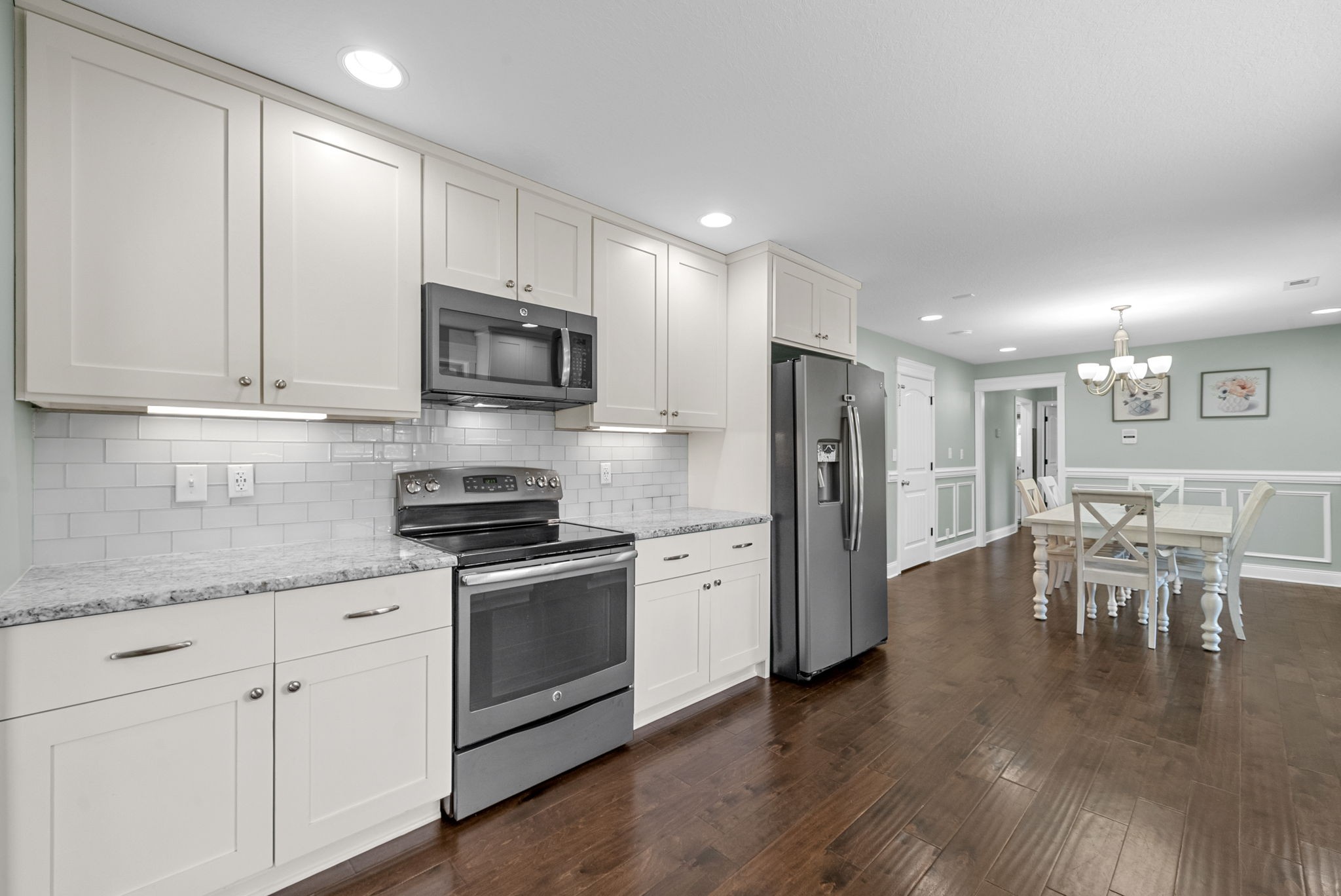 - AppliancesElectric Oven, Electric Range, Dishwasher, Ice Maker, Microwave, Refrigerator, Stainless Steel Appliance(s)