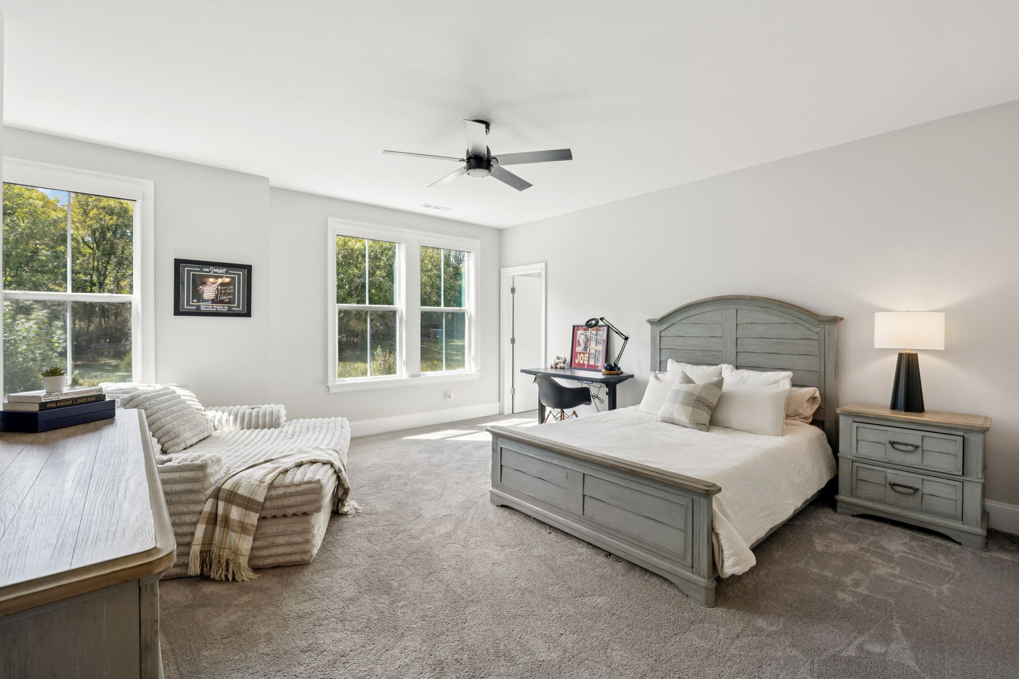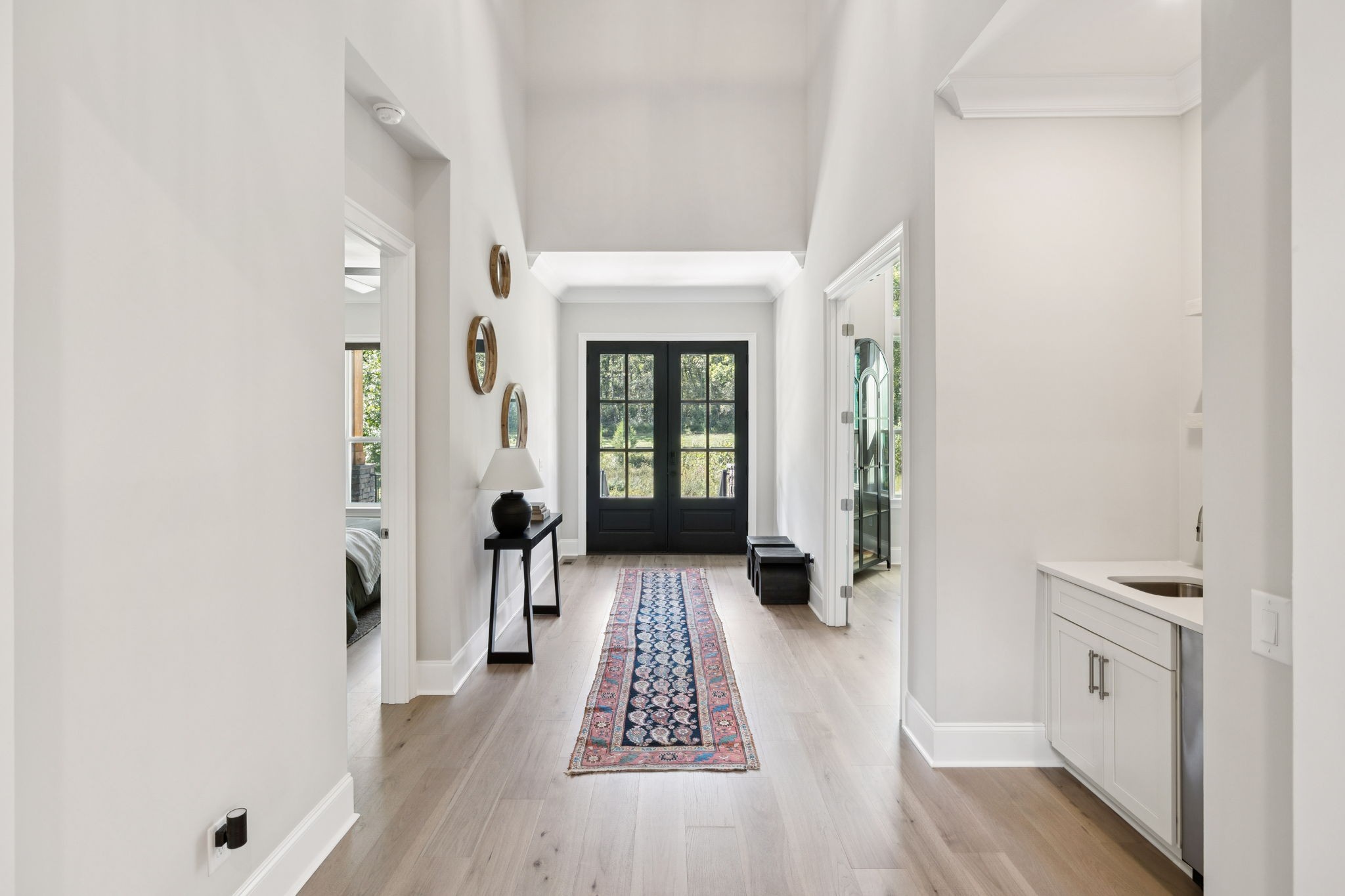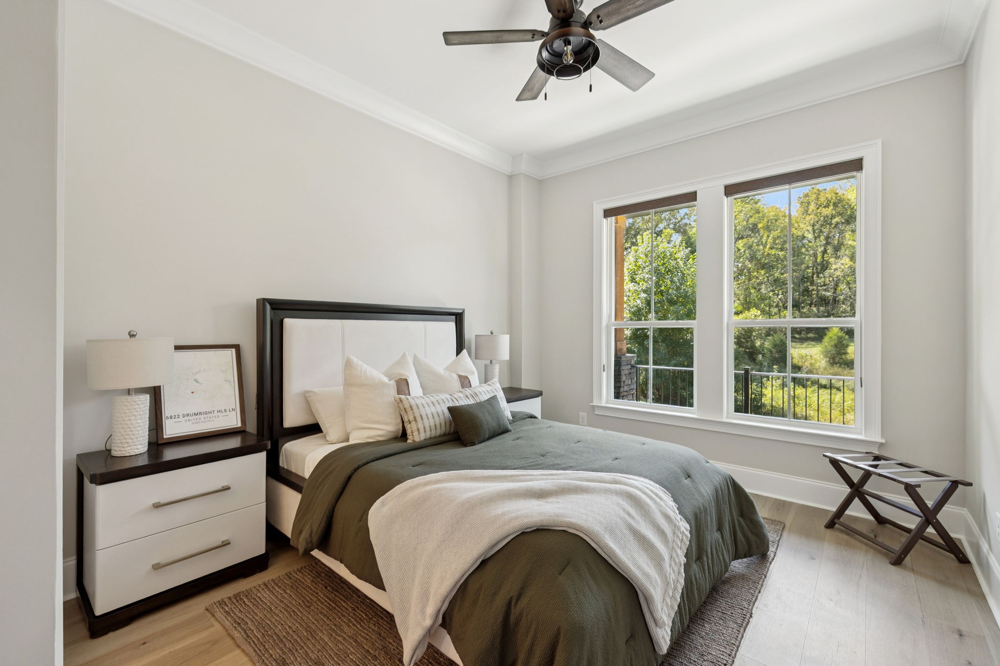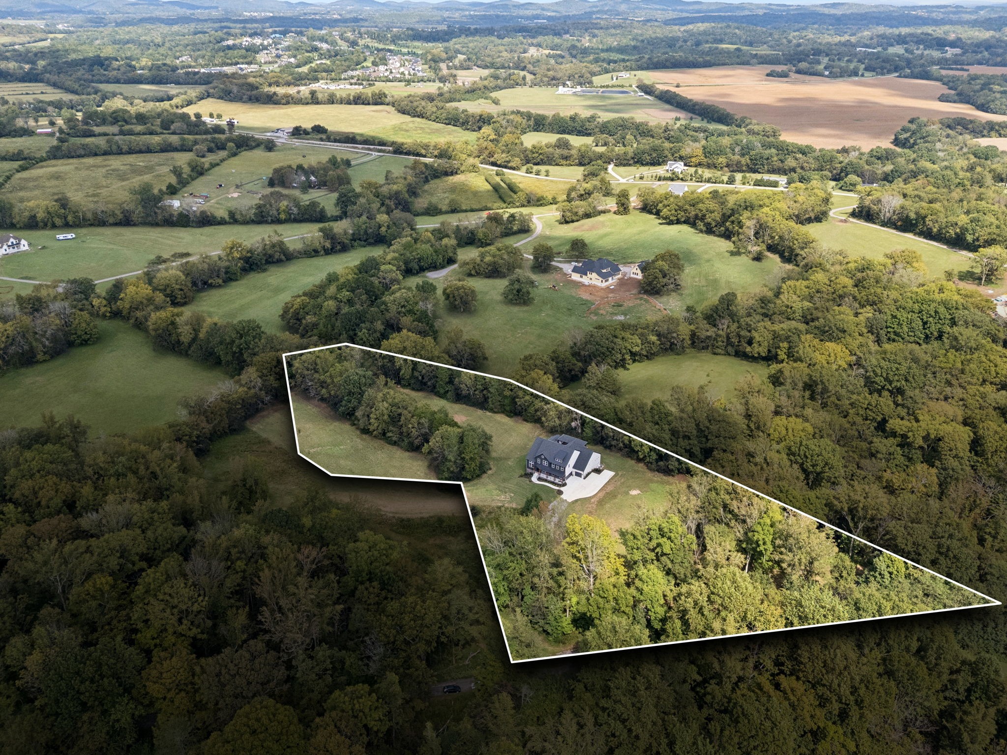Welcome to this exquisite custom home set on five rolling Tennessee acres in the heart of College Grove. Built less than a year ago, this residence blends modern luxury with timeless craftsmanship. Soaring ceilings, floor-to-ceiling windows, and open living spaces create a light-filled atmosphere throughout.