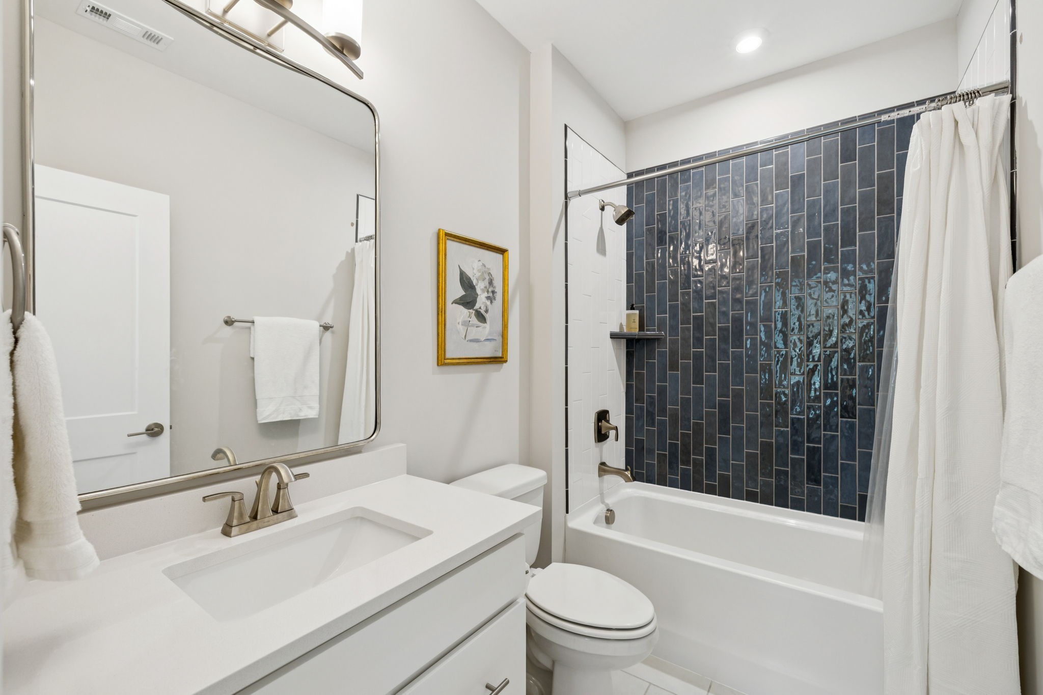 The primary suite is a true retreat, featuring a spa-like bath with a walk-through shower, soaking tub, dual vanities, and a massive walk-in closet connected to the laundry and mudroom. A second ensuite bedroom on the main floor offers flexibility for guests or multi-generational living. Upstairs, three additional ensuite bedrooms are complemented by a media room, game room, open bar, and powder bath—perfect for entertaining. The unfinished basement provides 1,981 square feet of future living potential with plumbing and wiring already in place.