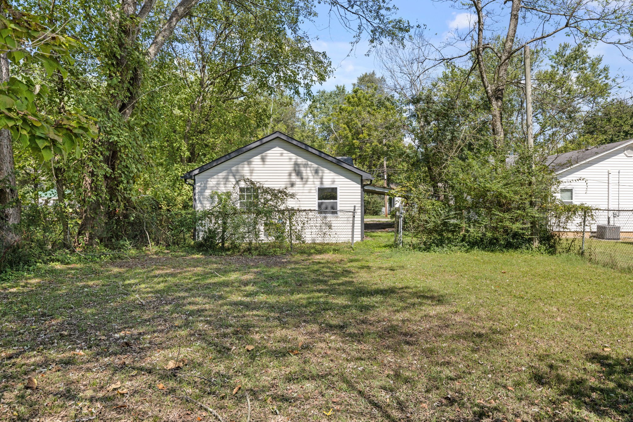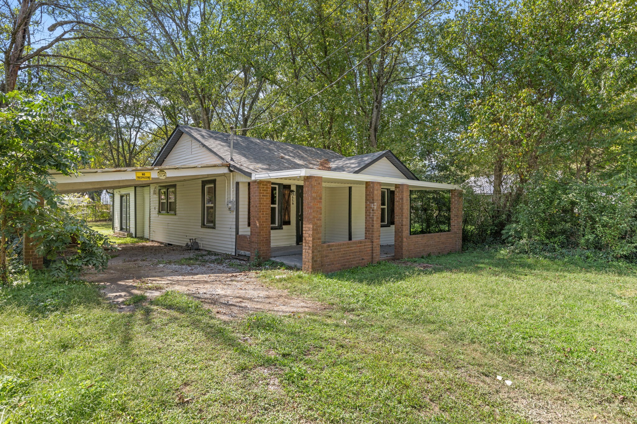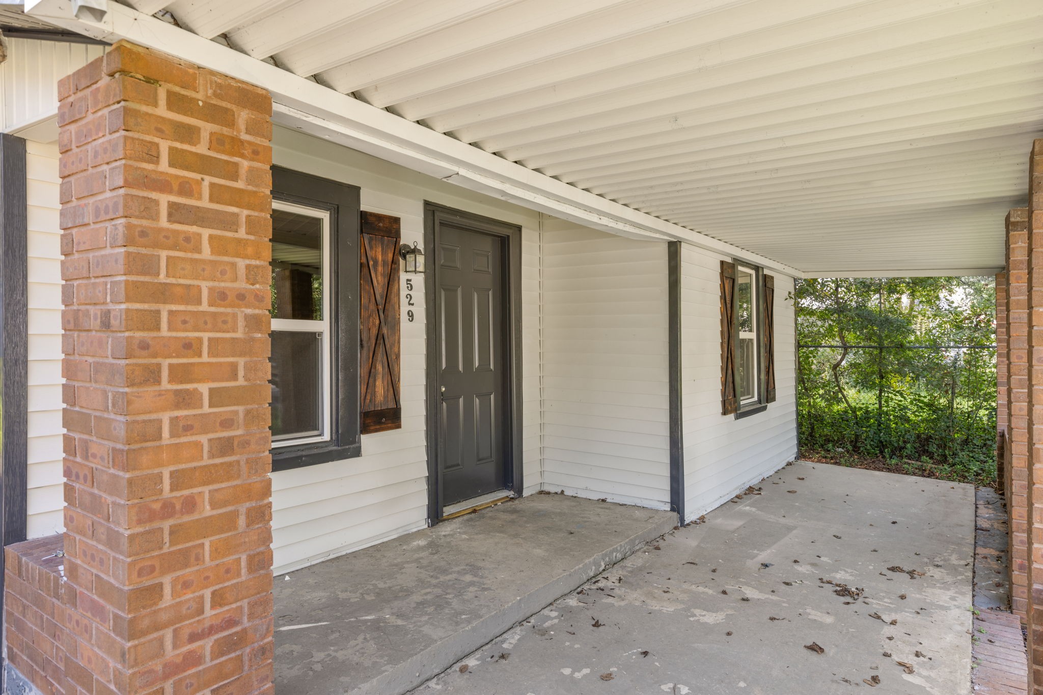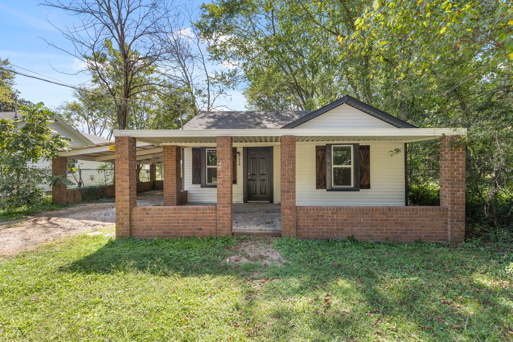 Outside, the covered front porch with brick columns adds timeless curb appeal, while the attached carport offers convenient parking. The large backyard is partially shaded and fenced, making it perfect for outdoor gatherings, pets (with approval), or a future garden.