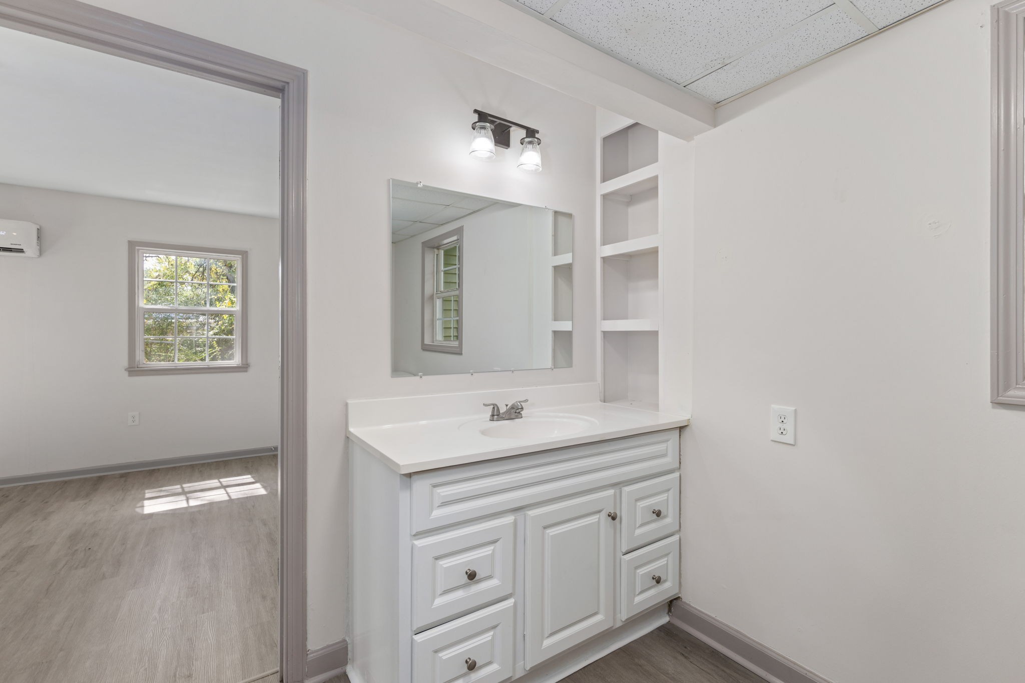 The home offers two well-sized bedrooms, including a primary bedroom with generous closet space, plus a bonus utility room for added convenience. The bathroom has been tastefully updated with modern fixtures, ensuring both style and function.
