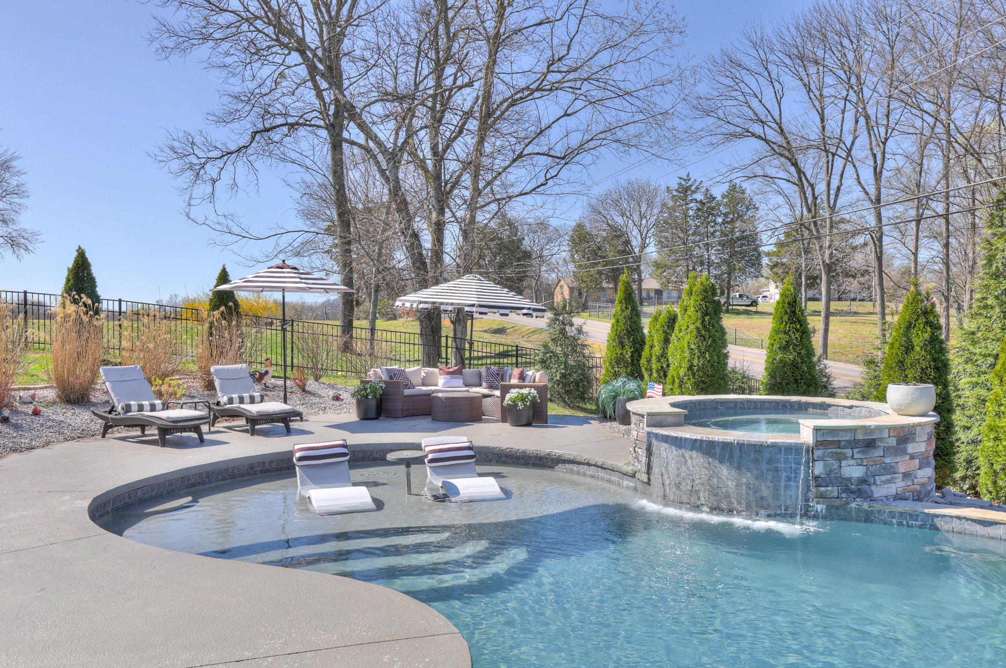This home is part of a small gated community and so close to everything with BNA/Nashville less than 30 minutes away. If you love to entertain, this home provides both indoor and outdoor areas for family and friends to enjoy. An amazing pool with built in spa, as well as a covered porch and fenced yard for the kids and/or pets make this such a desirable home. Huge safety plus: it has a dedicated Tornado storm shelter in the garage floor. HOA fee covers the landscaping and irrigation of the common area grounds and gate servicing. Not only are there 5 bedrooms, 3 full baths and a powder room, there is a large upstairs loft and a separate movie room for lots of playspace or a quiet home office. Beautiful hardscaping/landscaping to enjoy!