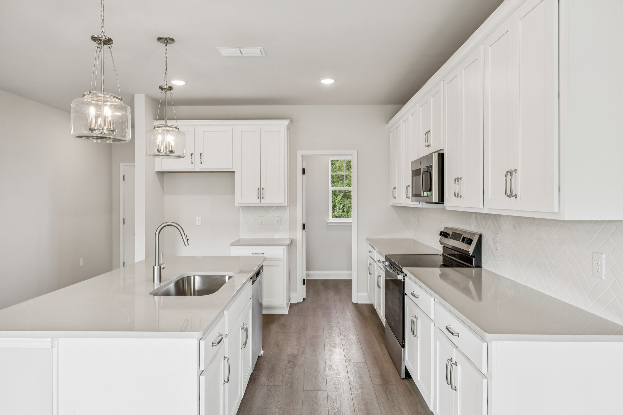 Lot 159. This open-concept Brentley floorplan by Ashton Woods has spacious living areas ideal for entertaining. The L-shaped layout features the dining area adjacent to the kitchen which includes designer-curated finishes from the Timeless Collection such as glass jar pendant lights, white herringbone backsplash, grey quartz counters, white cabinets and a single-bowl stainless sink. Enjoy outdoor living on this large corner lot with a covered back porch. The flex room off the Great Room is perfect for a home office. Upstairs you'll find a loft space and oversized primary suite with large walk-in closet as well as three secondary bedrooms, additional full bath with dual vanity, and upstairs laundry room. Don't miss our early bird incentives for this brand new community! See sales agent for details.