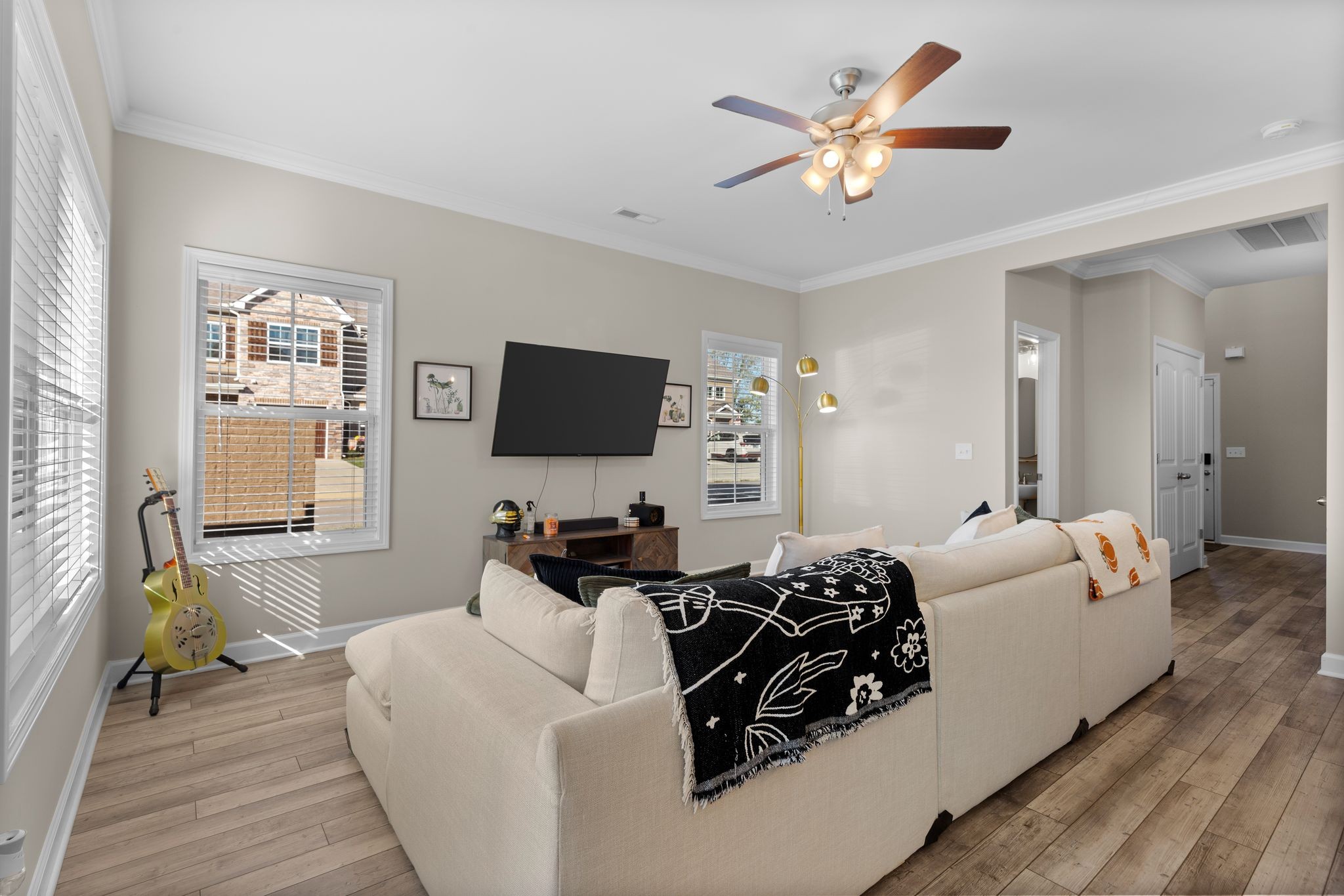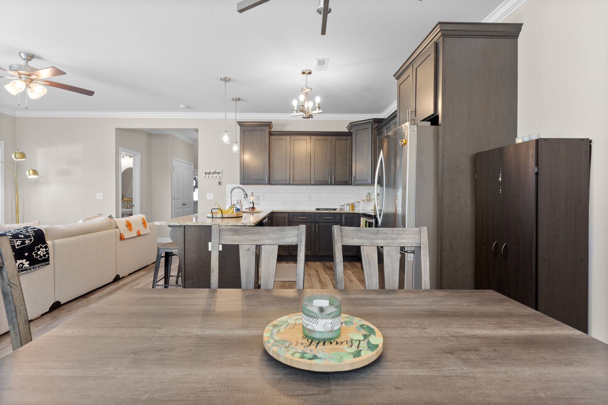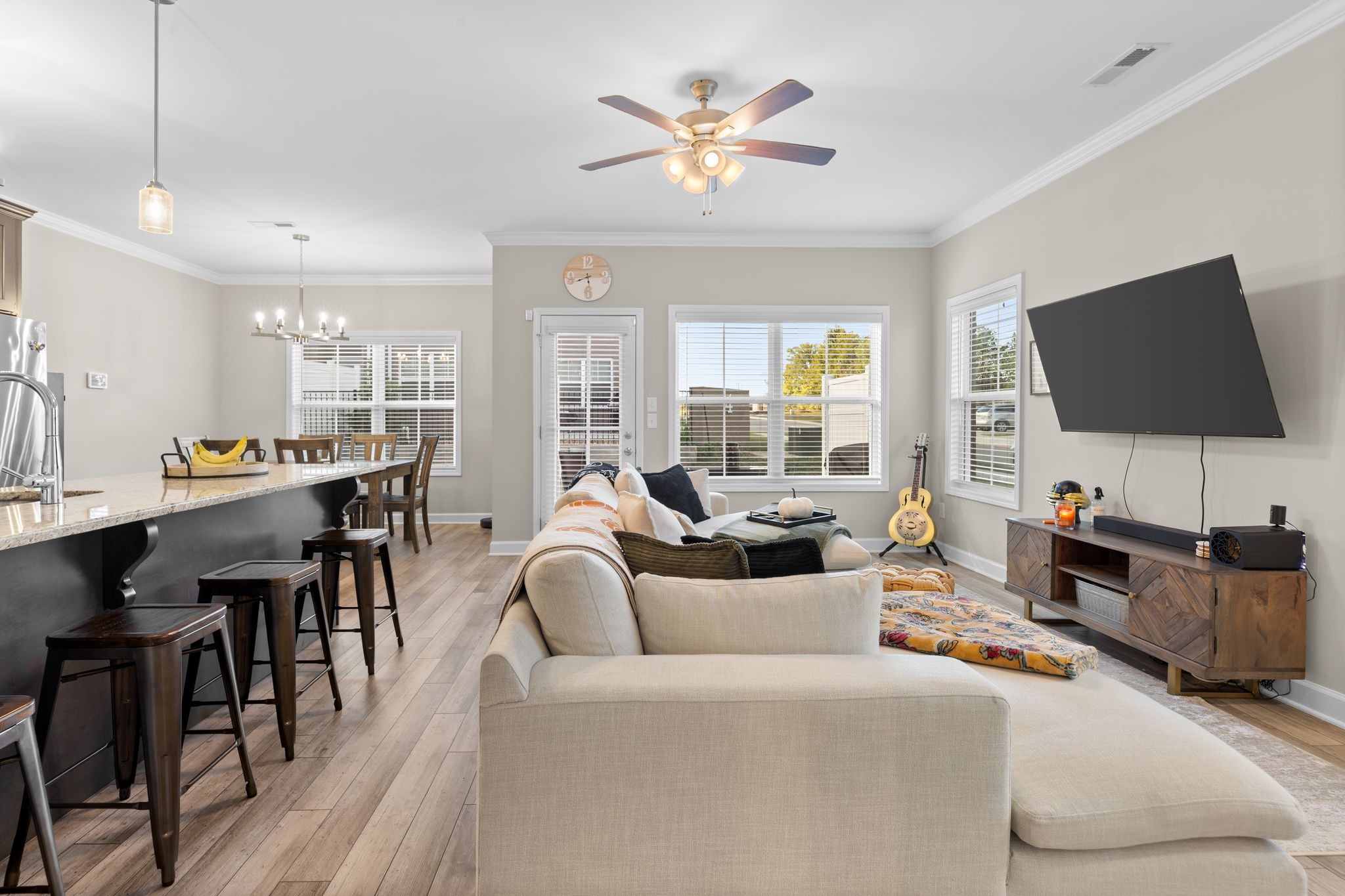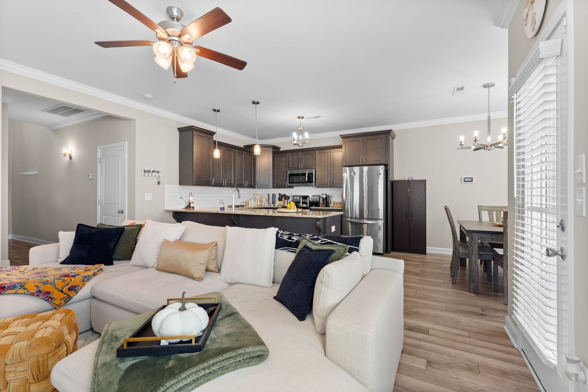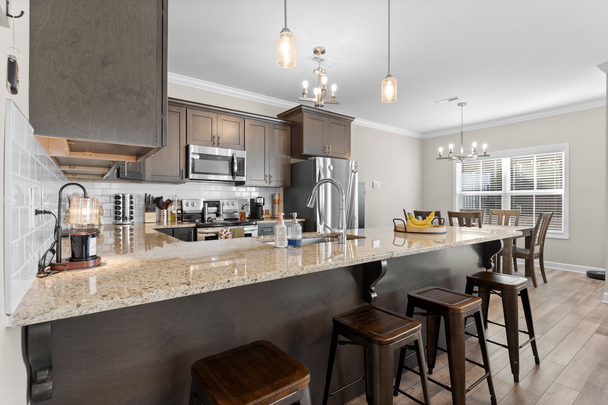 Beautiful end unit with 2 bed, 1/2 bath in this upscale gated community. Downstairs feature an open concept. Granite countertops throughout. This condo has been meticulously kept! LVP flooring downstairs and carpet upstairs. H.V. Griffen Park is behind this community.