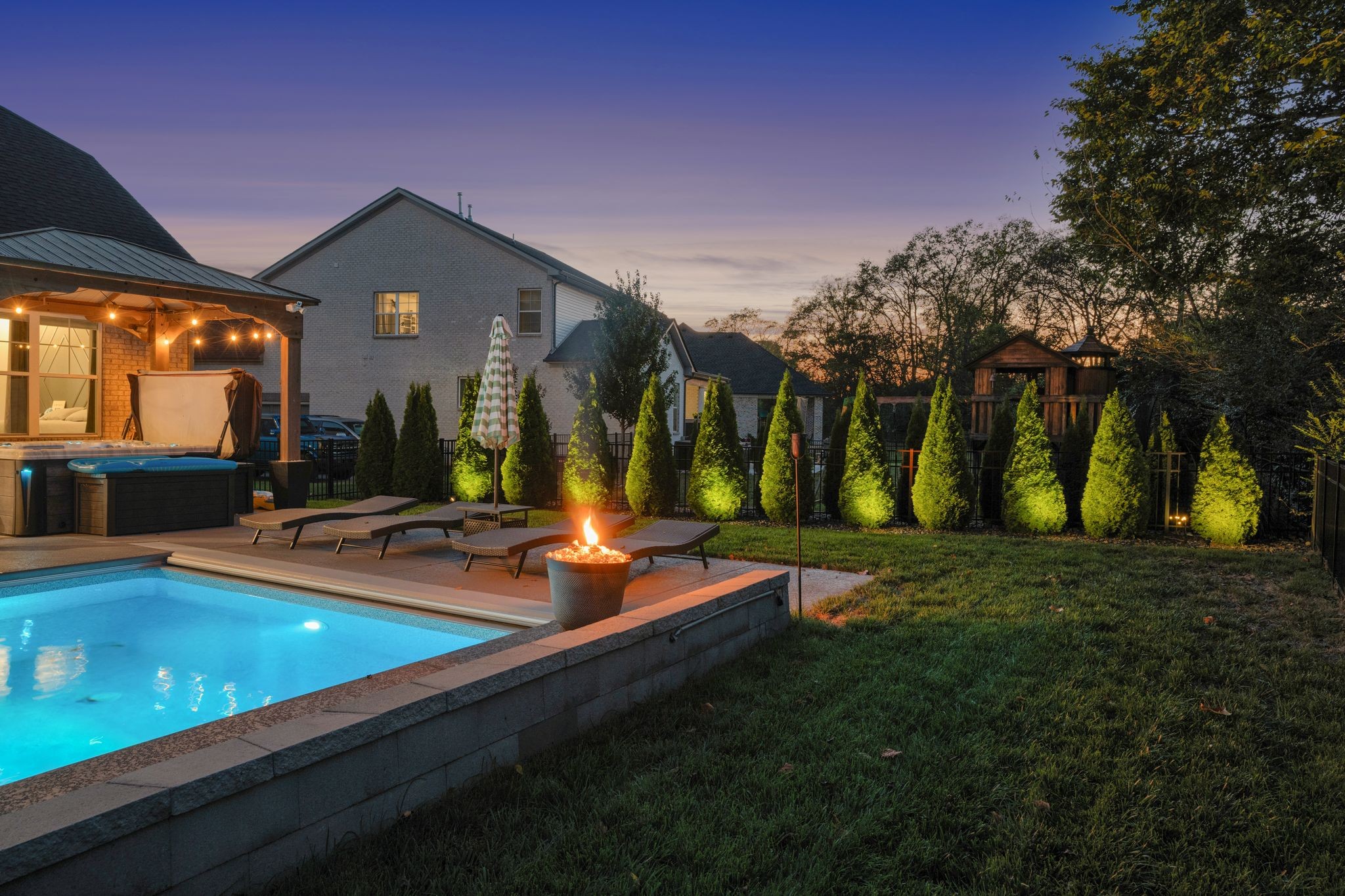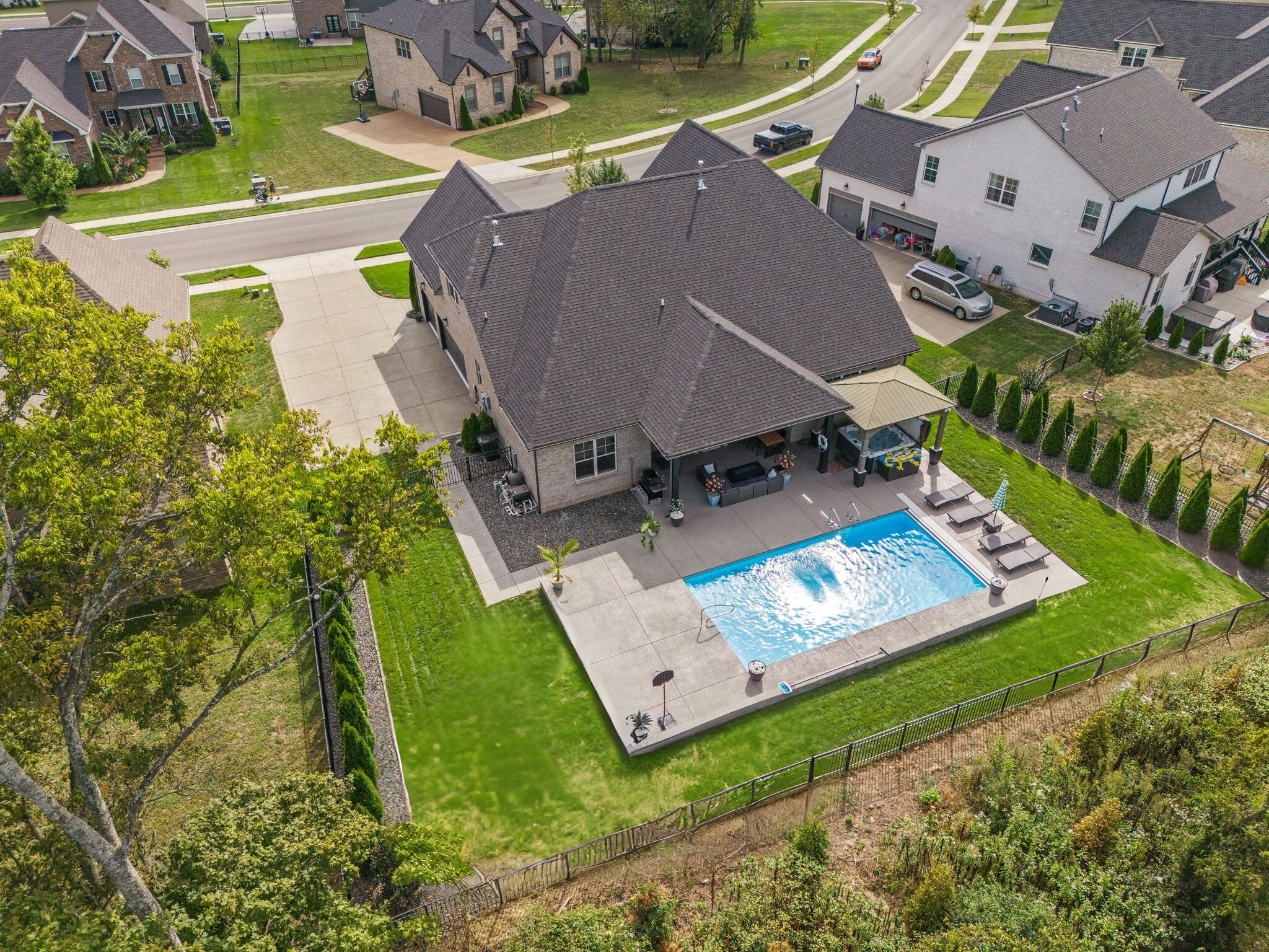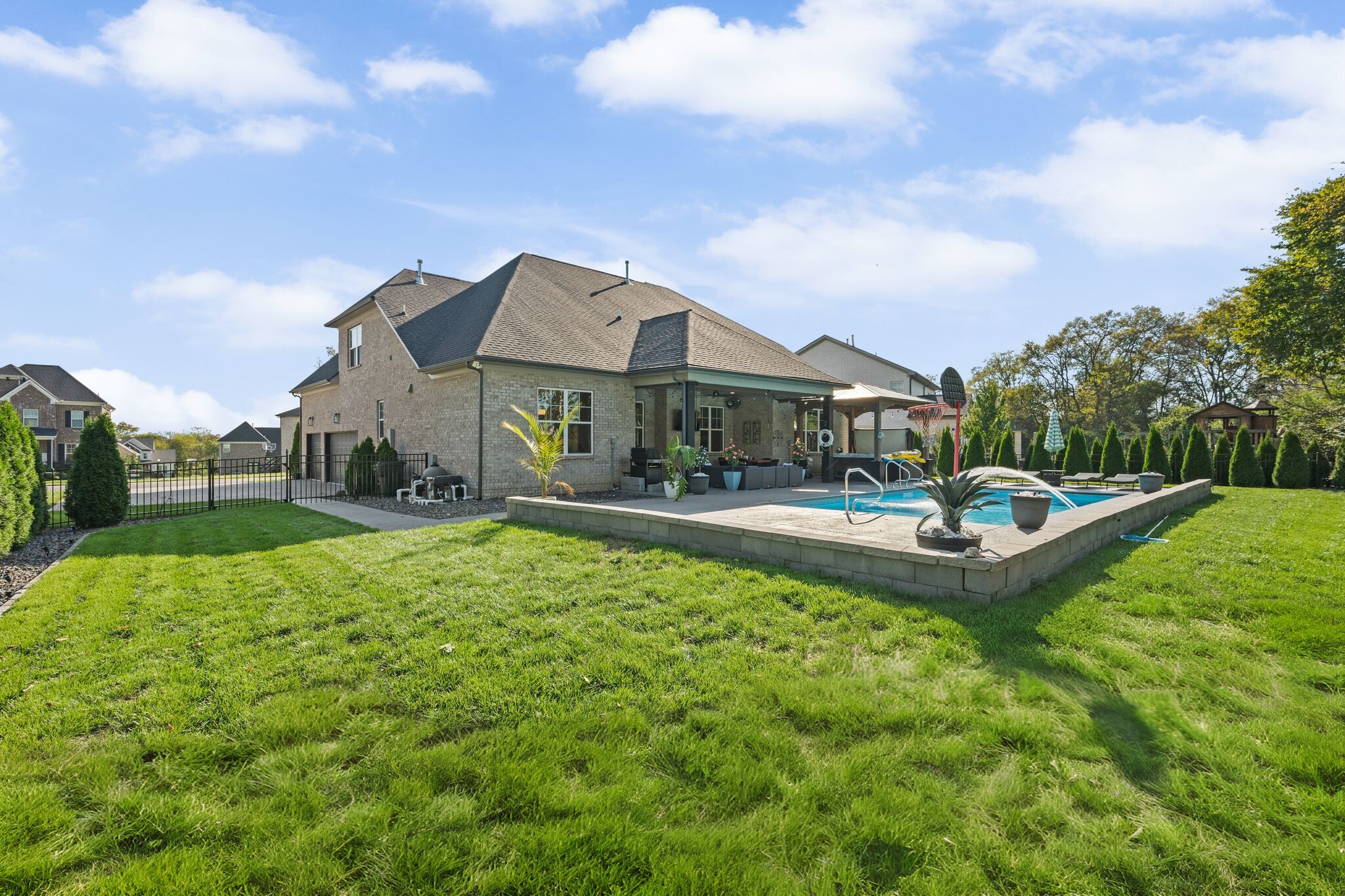OPEN HOUSE SUNDAY 2-4PM This 4 bedroom, 3 bathroom home tucked back in the desirable Kennesaw Farms subdivision is an absolute stunner! Built in 2021, every nook and cranny inside and outside of the home has been thoughtfully upgraded for style, functionality, and entertainment. From the very first steps into the home you're greeted by a modernized stairwell complete with stone accent wall. The downstairs primary suite has been updated with an accent wall, custom closet system, and expanded frameless shower. The open concept living and kitchen area is complete with an oversized island, a built out electric fireplace and overlooks the incredible backyard entertainment space. Even the 3 car garage is updated with epoxy flooring, a built in shelving/work area, and a safe room! Upstairs features 2 bedrooms - one being oversized with a walk in closet - a full bath, bonus area, and huge walk in attic storage space. And don't forget about the custom pantry shelving, dry bar, drop off zone, rain bird irrigation system, and functional laundry space complete with utility sink! I'd say you'll love this home so much you won't want to go outside, but when you see the backyard you may change your mind. Between the in-ground pool with wading area and retractable cover, the hot tub covered by a beautiful pergola, covered entertainment space complete with surround sound, pull down shades, installed gas grill, and complete privacy from the arborvitae trees, this backyard space is sure to be your new oasis. This home is simply gorgeous top to bottom - you won't want to miss it! Capitalize on the savings of a free appraisal and up to $9,990 toward your closing costs by using preferred lender - William Potts, PRMI, 615-512-2967