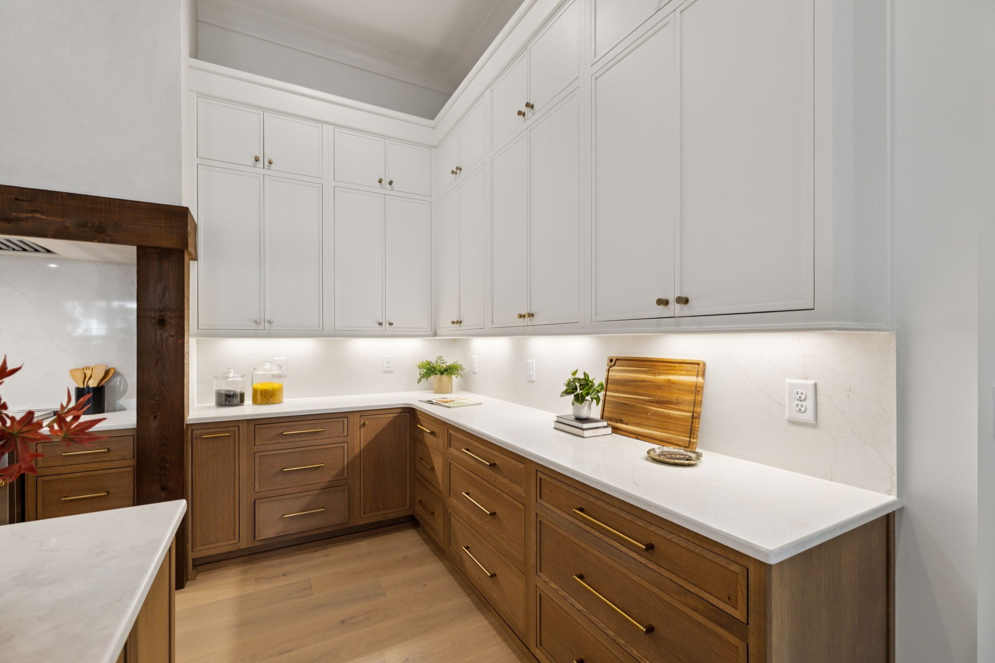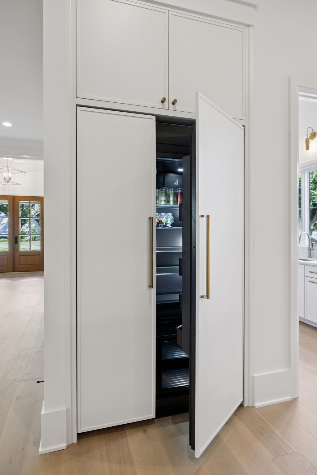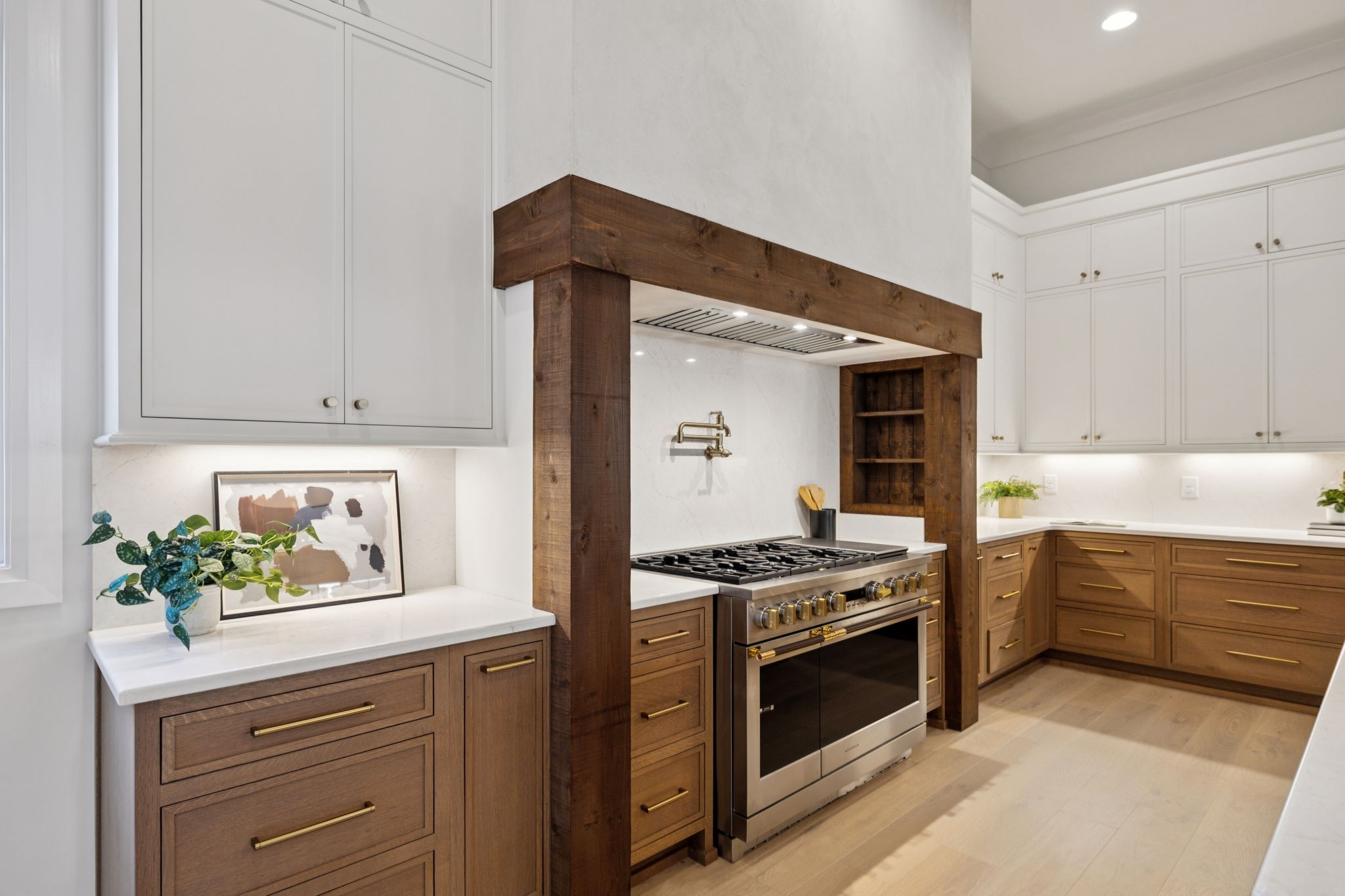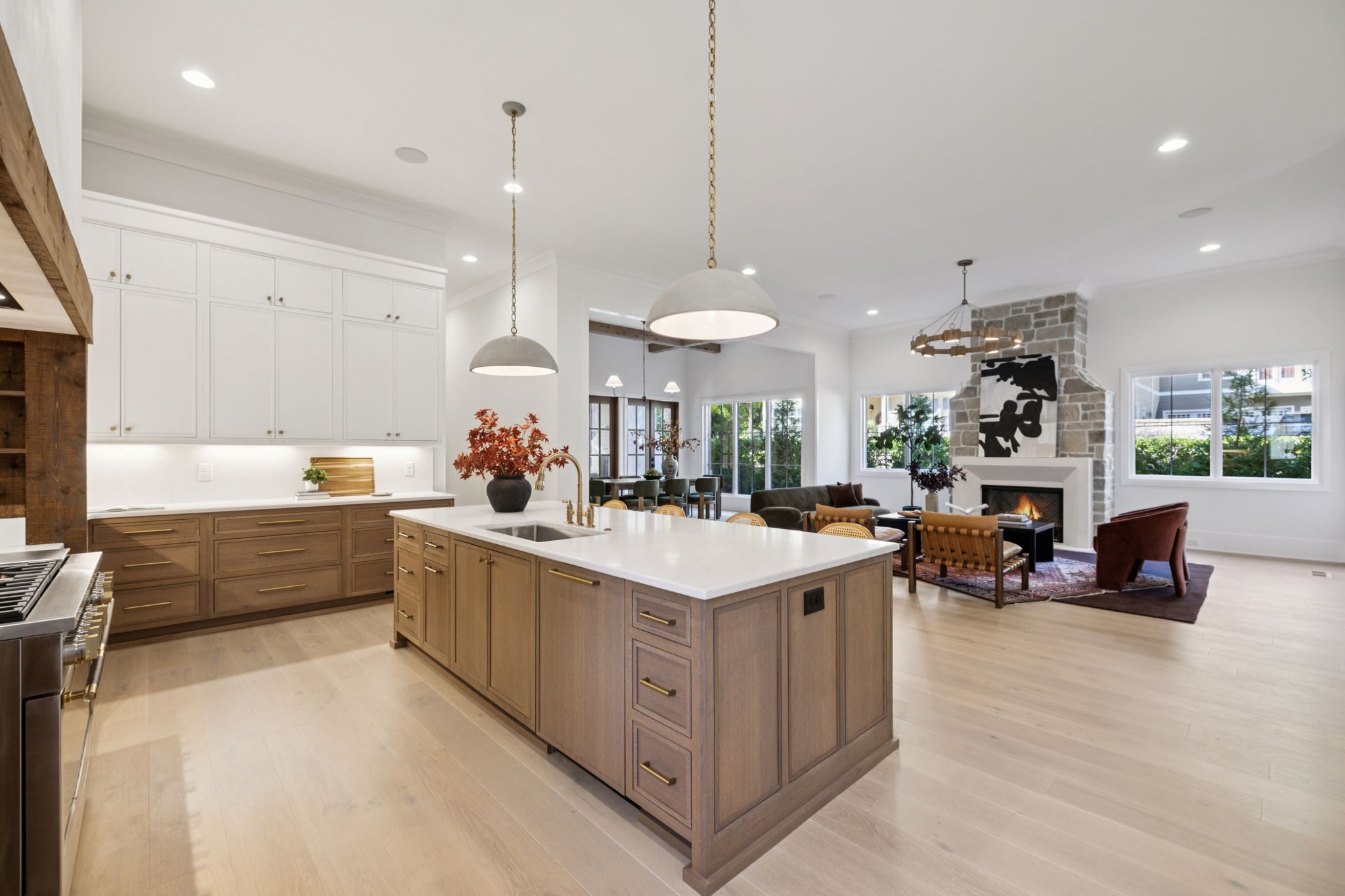 From the moment you step inside, soaring 12’ ceilings on the main level create an airy, open feel while natural light pours through oversized windows. Every detail has been carefully curated with high-end finishes, from the custom tilework throughout to the seamless Monogram appliance package and panel-ready refrigeration. The chef’s kitchen is a true showpiece with a 48” Monogram range, expansive island, and hidden scullery featuring double ovens, ice maker, and panel-ready dishwasher—ideal for effortless entertaining. A custom wine room with built-in display racks adds both function and artistry.
