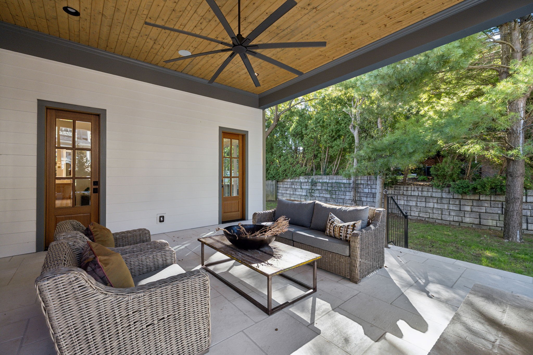 Outdoor living is equally impressive with a large covered patio framed by privacy landscaping, perfect for gatherings by the gas fireplace. An irrigation system keeps the lawn low-maintenance and lush.