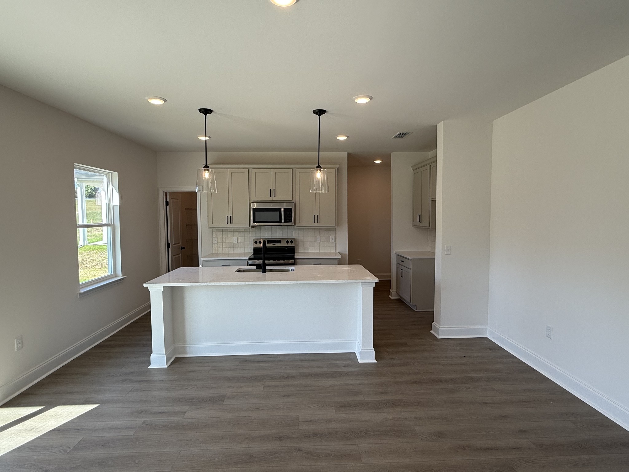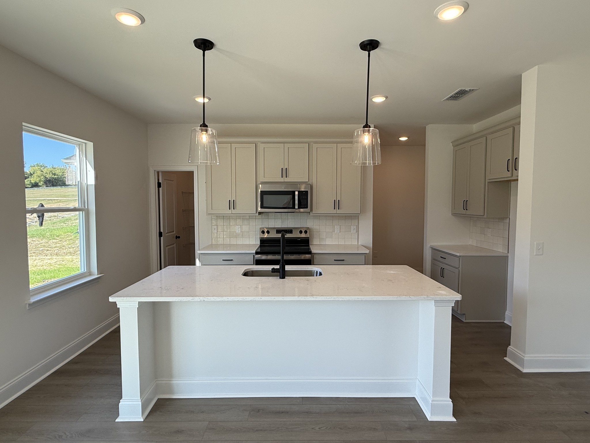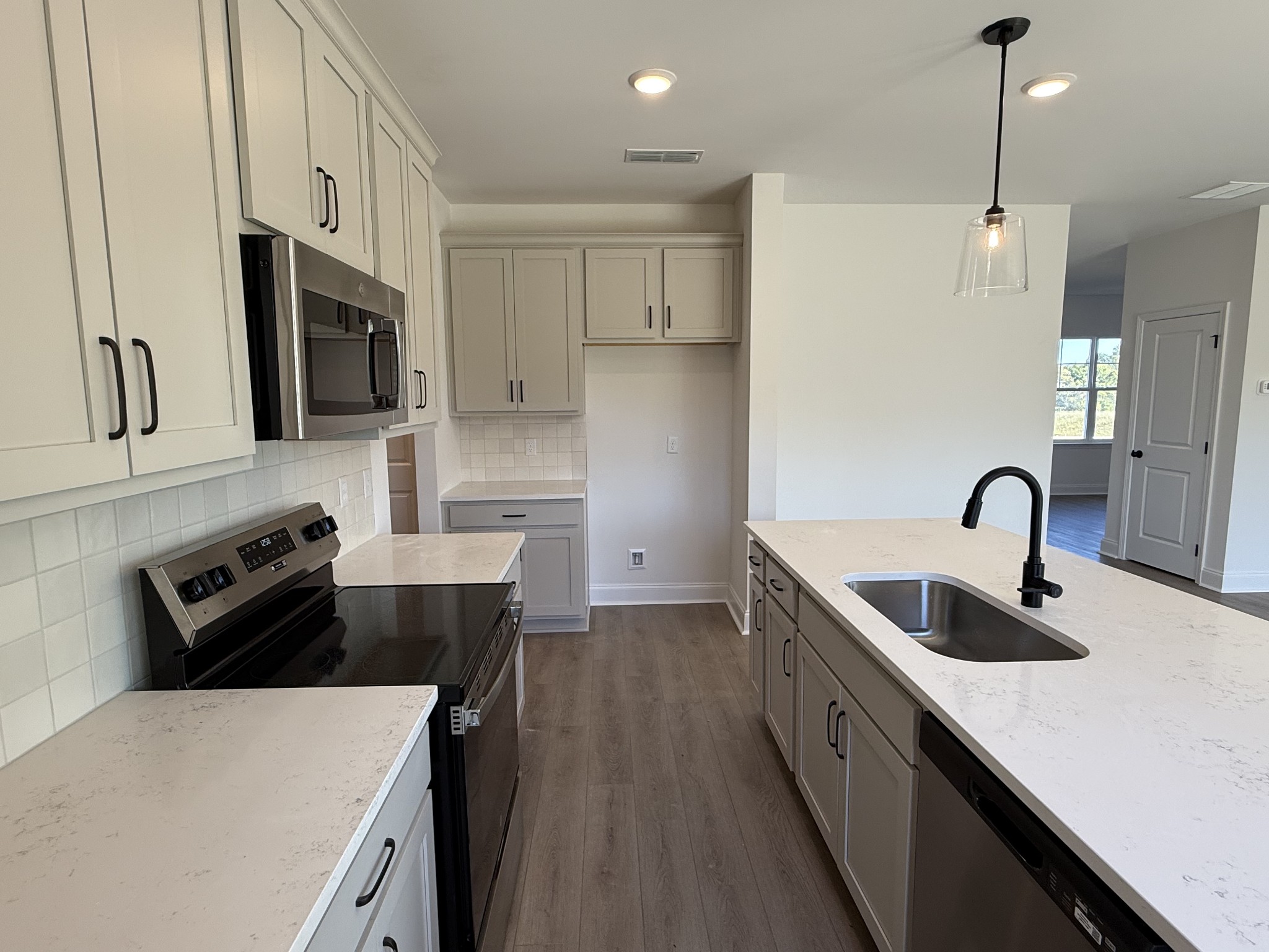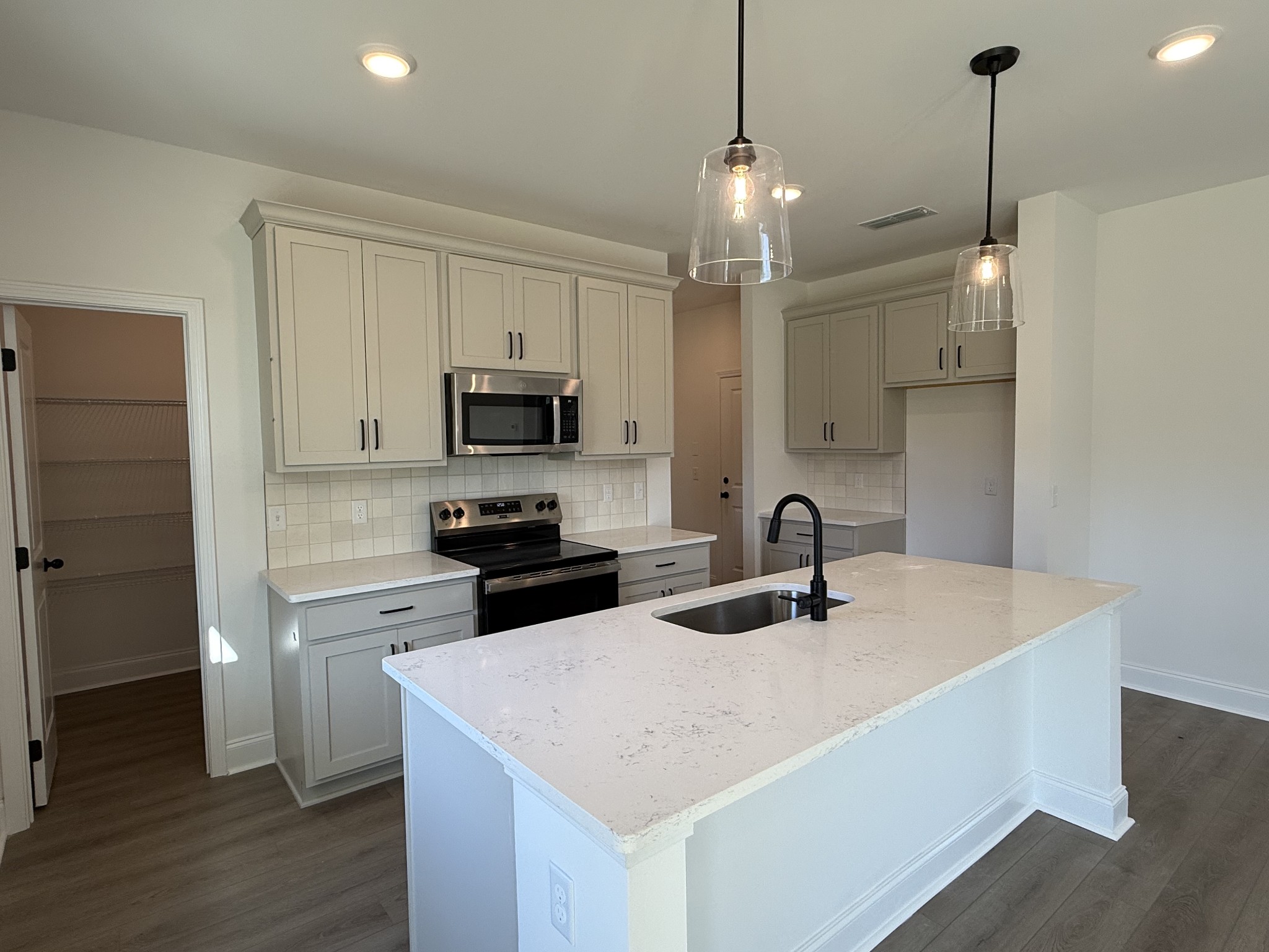 Lot 160. This Westmore floorplan by Ashton Woods has plenty of storage space for everyone. This open-concept features the dining area adjacent to the kitchen which includes a large walk-in pantry. The designer-curated finishes from the Artisan Collection showcase sleek black pendant lights, nude tile backsplash, veined quartz counters, taupe cabinets and a single-bowl stainless sink. Enjoy outdoor living with a beautiful wooded view from the covered back porch. The flex room off the foyer is suitable for a home office, formal dining or sitting room. Upstairs you'll find an oversized primary suite with large walk-in closet as well as three secondary bedrooms, each with tons of closet space! The secondary full bath also features quartz counters with dual vanity. Don't miss our early bird incentives for this brand new community! See sales agent for details.