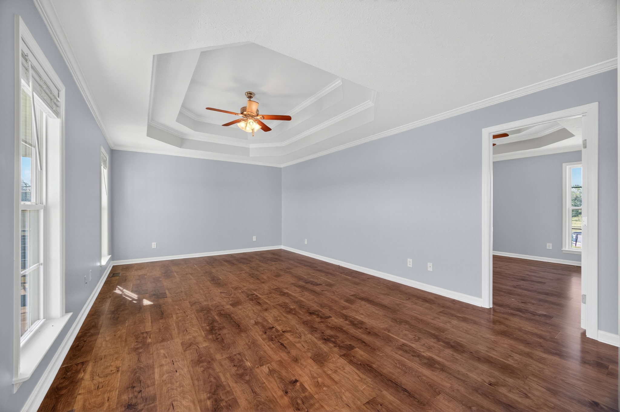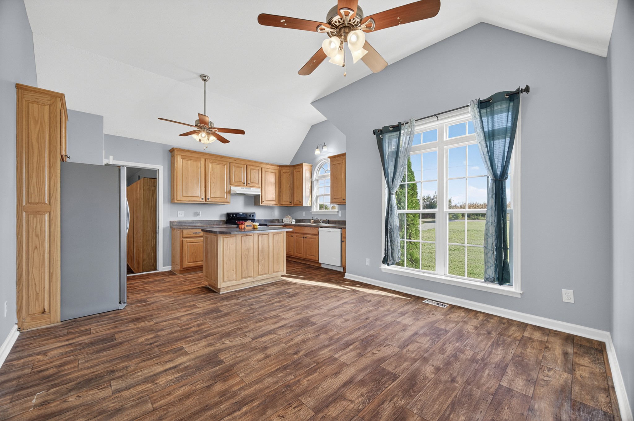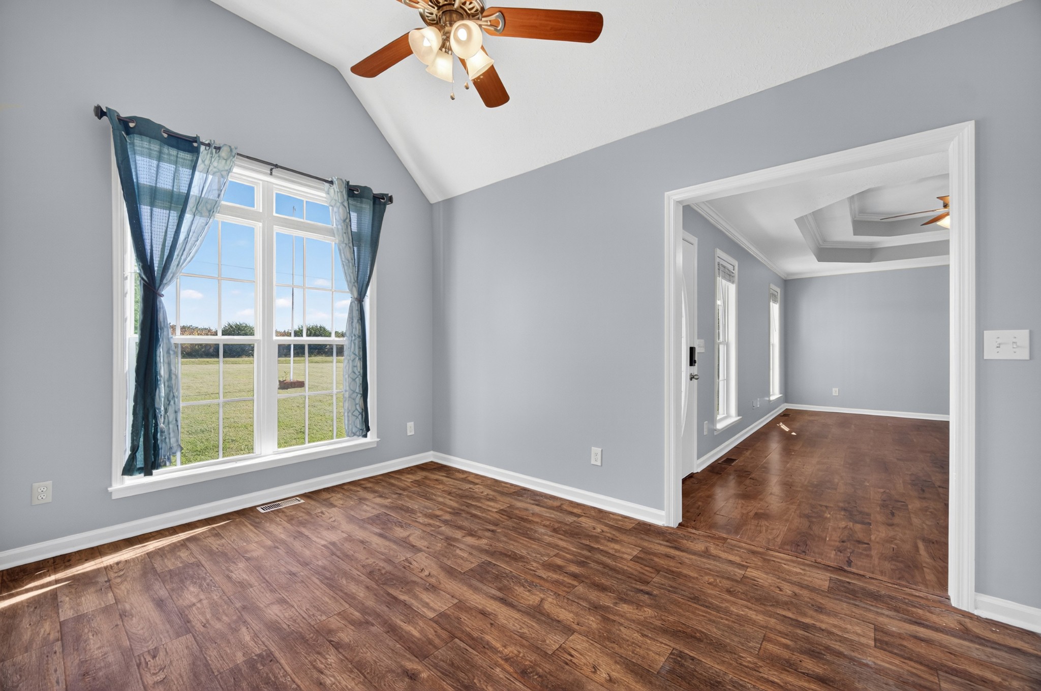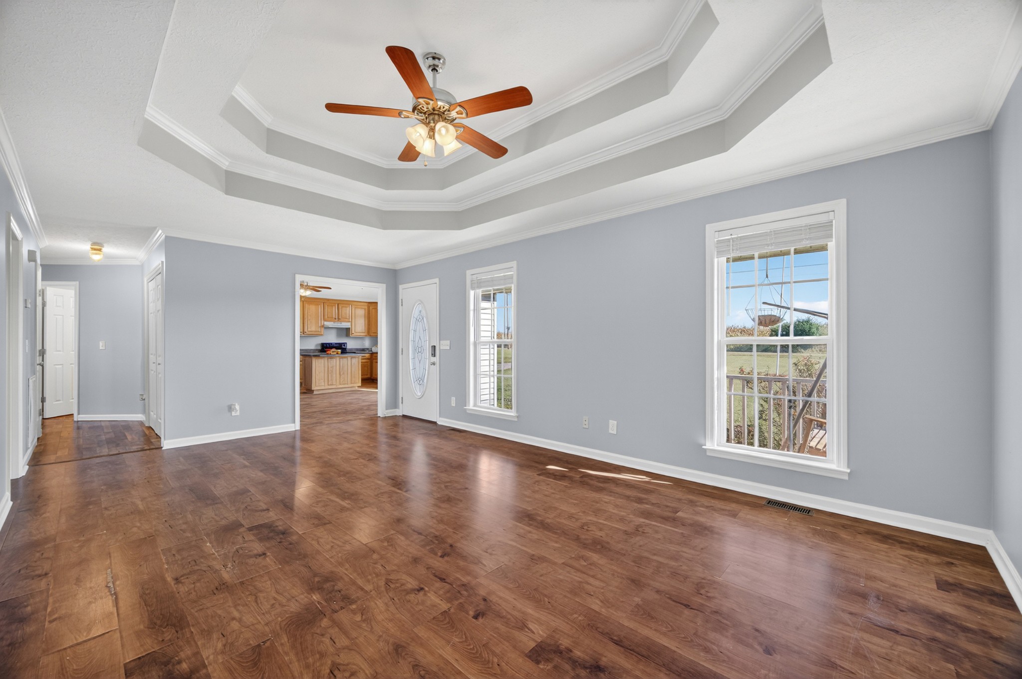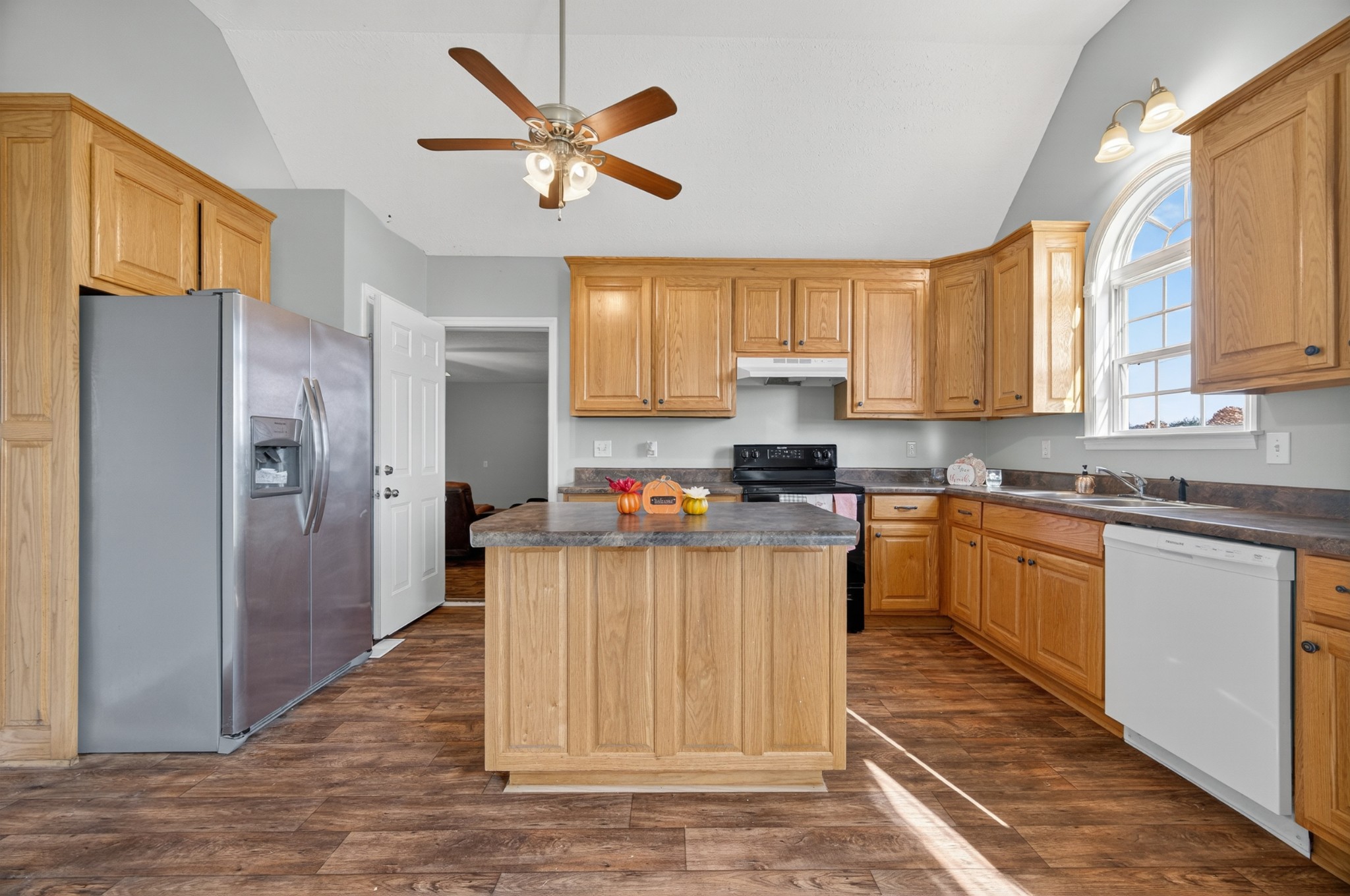 Welcome home to this inviting 3-bedroom, 2-bath retreat that perfectly blends comfort and style. The living room’s trey ceiling and crown molding add an elegant touch, while the vaulted kitchen features a center island and plenty of cabinetry—ideal for everyday cooking or entertaining guests. A spacious family room provides even more room to relax or gather. The primary suite offers a peaceful retreat with a trey ceiling, crown molding, ceiling fan, and private ensuite bath. Sitting on just over an acre, the fenced backyard is perfect for pets, play, gardening, or enjoying the outdoors. Conveniently located for an easy drive to Huntsville or Fayetteville and zoned for the desirable South Lincoln school district, this home truly checks all the boxes.