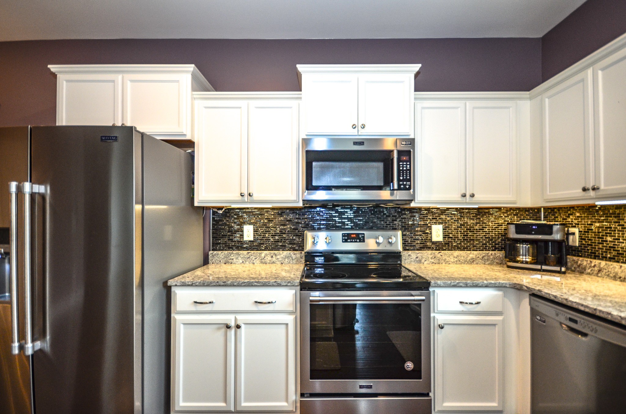DELUXE END UNIT WITH A FULL GAMUT OF UPGRADES! Wilson County taxes - Corner unit (with garage) located across the street from the swimming pool, mailbox, and dog park! Double master suites! Granite countertops and wood (or faux wood) throughout. High-end Maytag stainless appliances AND washer/dryer included (still under the original 10-year warranty). Deluxe owner's bedroom closet, remote door lock and unlock, pull-out drawers in pantry and owner's bath, and more. Remaining furniture is negotiable. THIS HOME IS A MUST-SEE!